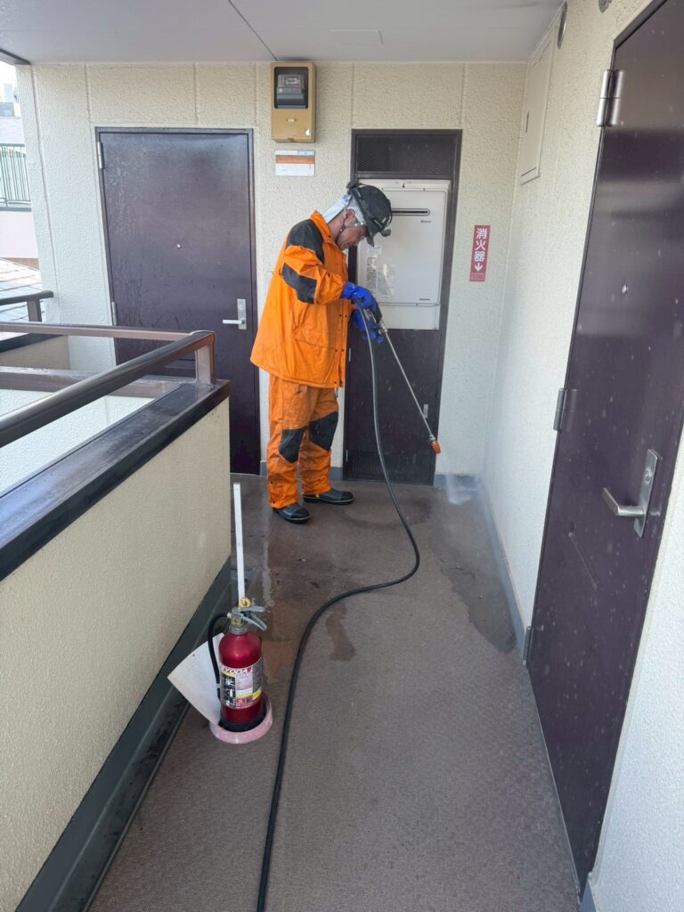 新宿区のマンション防水工事では高圧洗浄・シーリング作業を行いました。