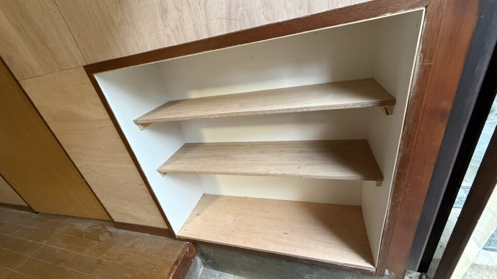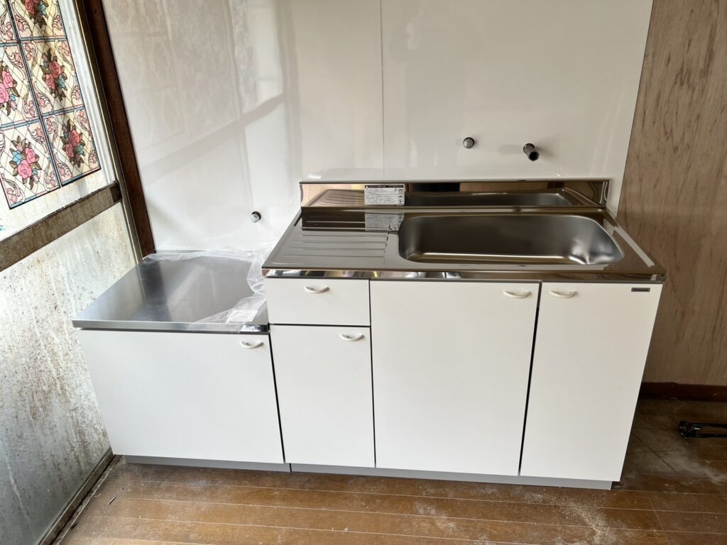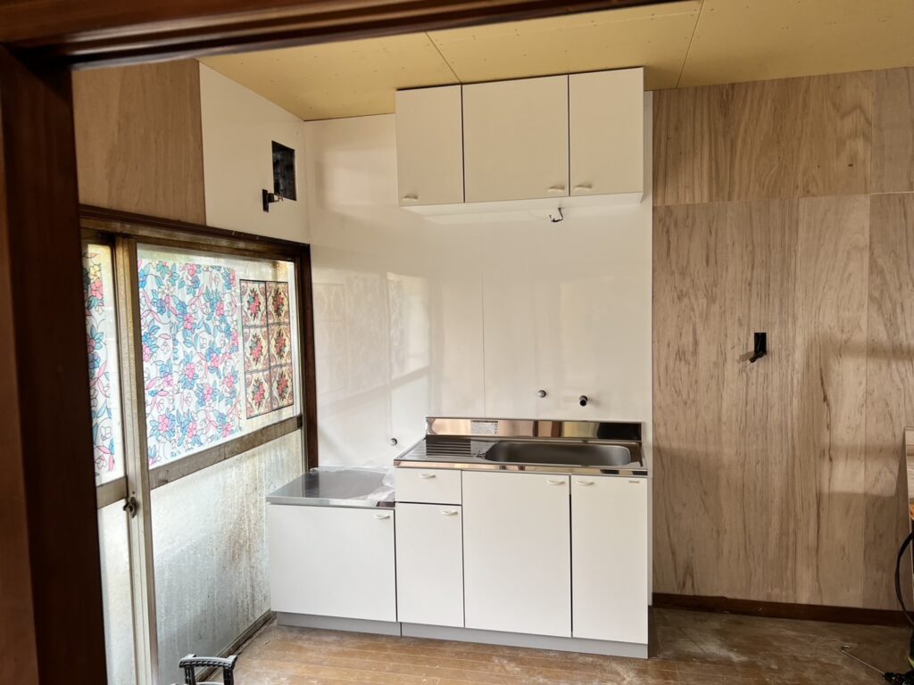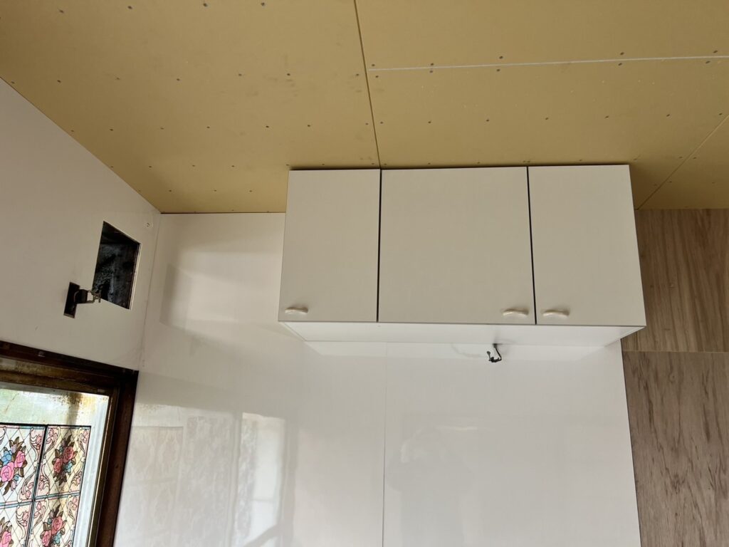 天井ボード貼替、キッチン交換、玄関収納造作など
