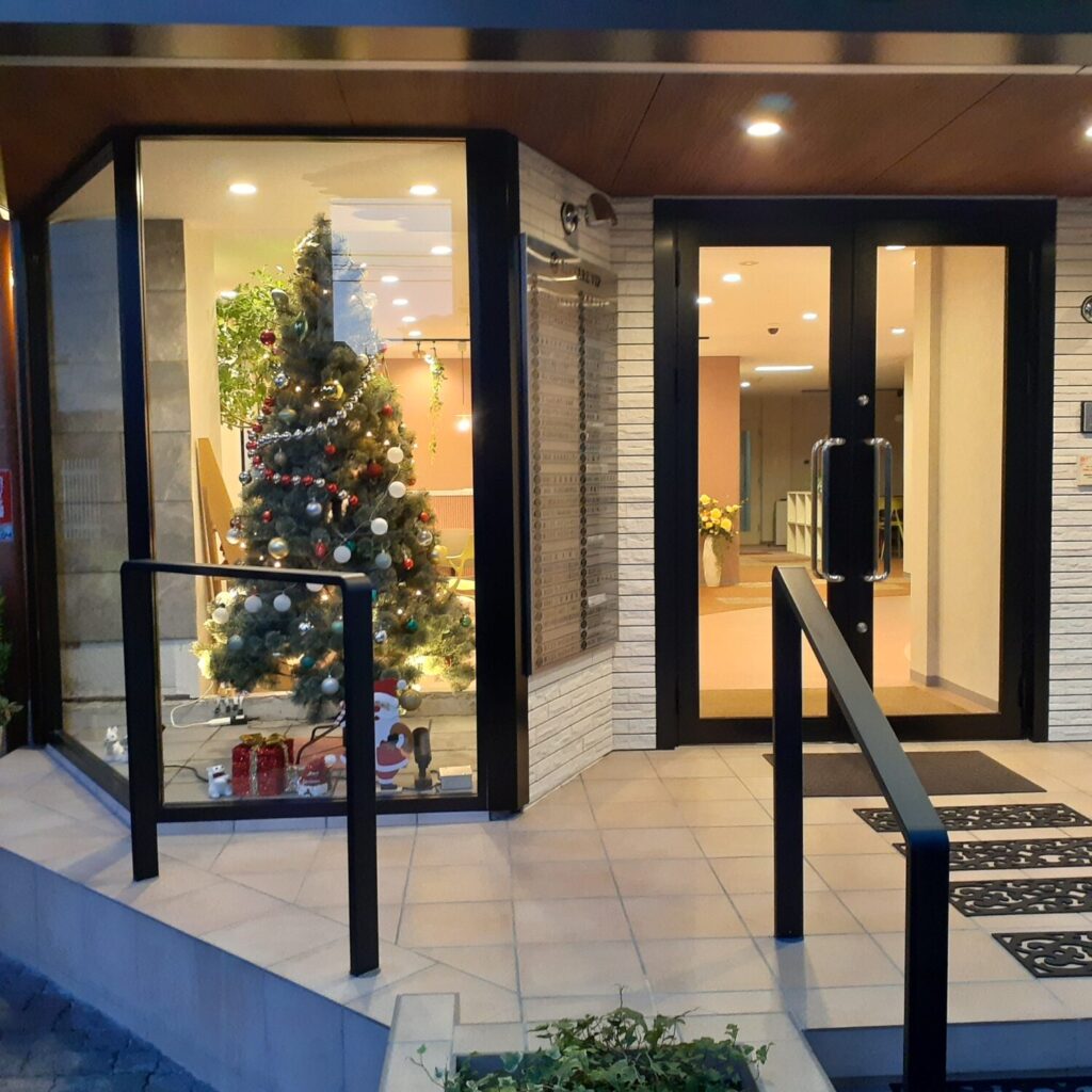 さいたま市のエントランス改装工事ダイノックシート作業が少々残っていましたので、職人さんにいそいで完了してもらいました。