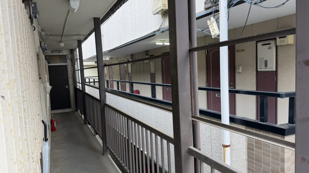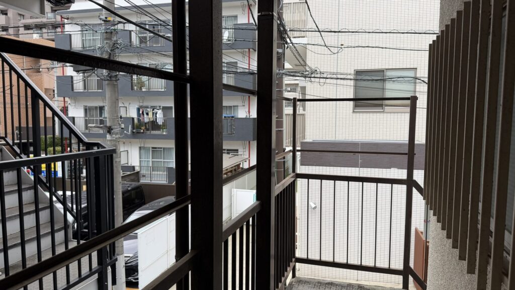 来週頭から作業を予定している鉄骨階段の塗装さぎょうですが、本日は塗装前に階段目隠し用の波板を撤去しました。