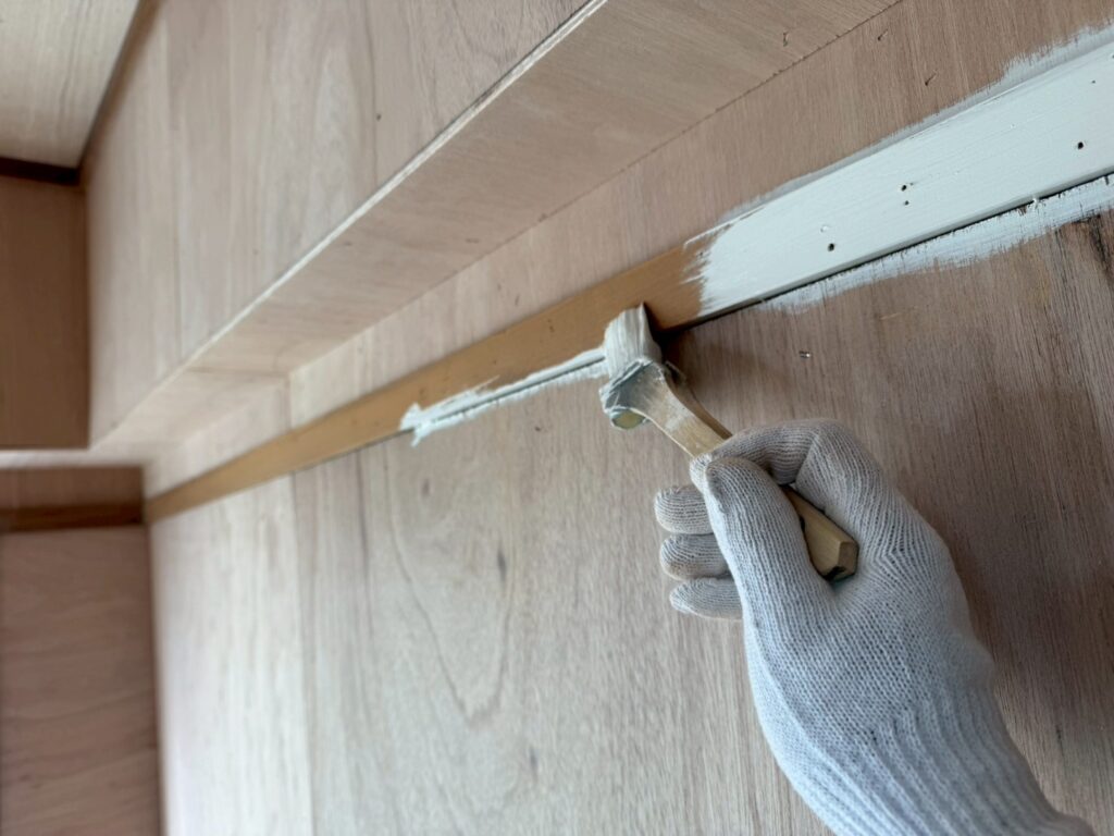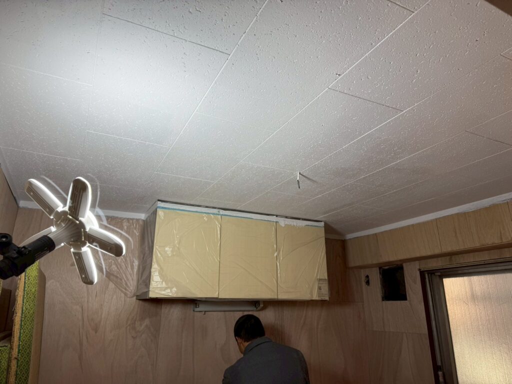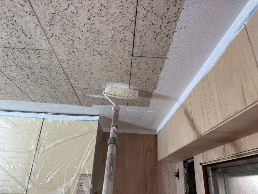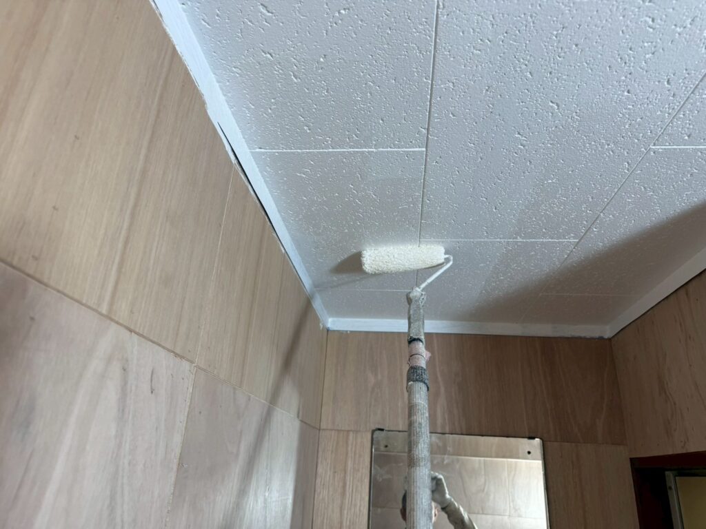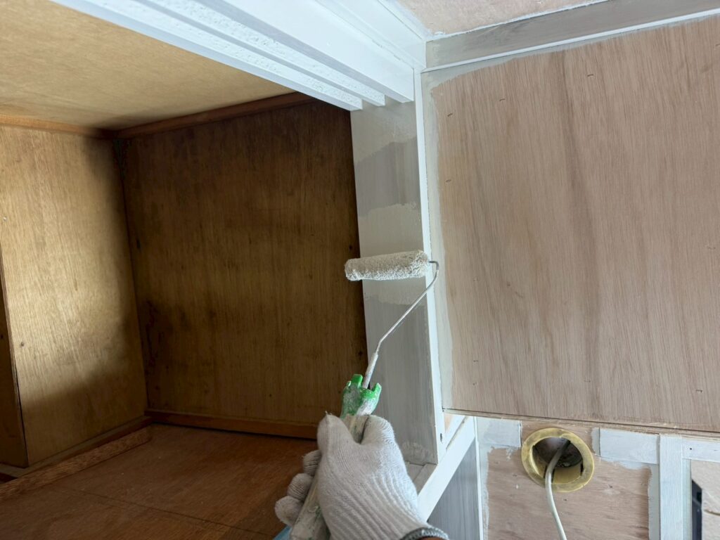 板橋区でリフォーム工事中のマンションですが、昨日で大工作業が終わりましたので、続けて塗装作業に入りました。