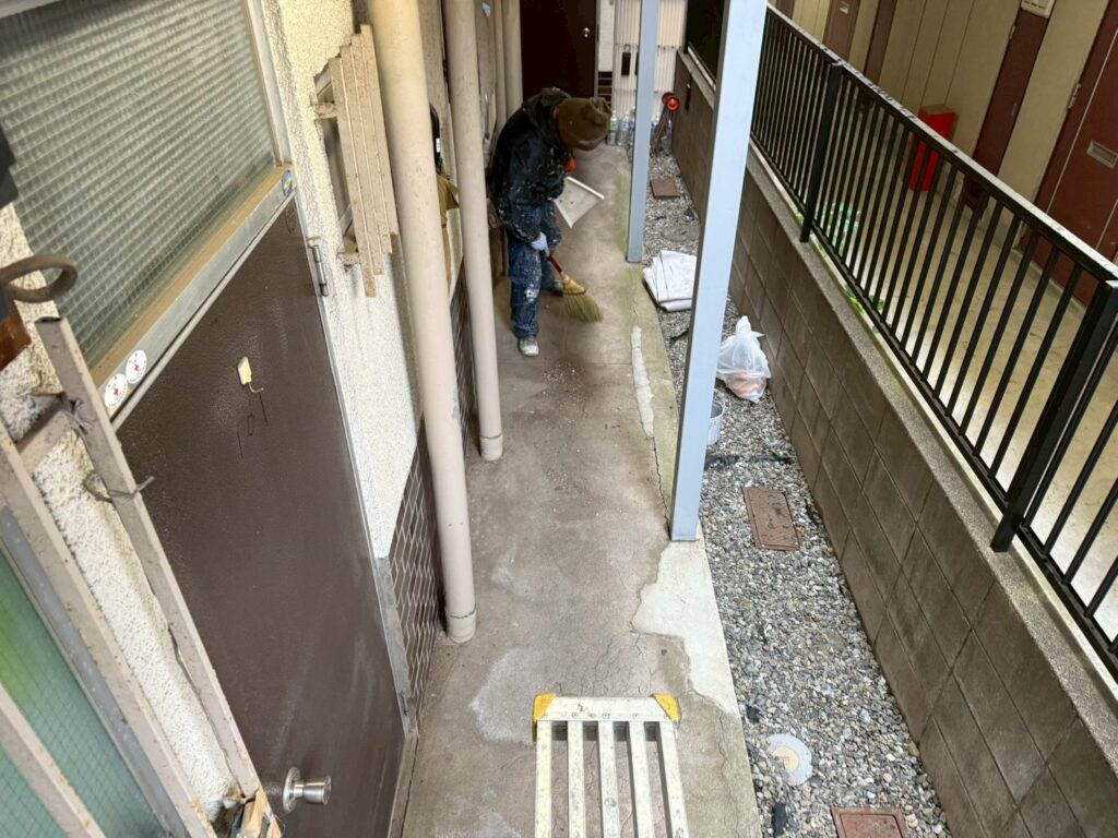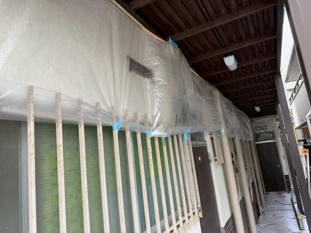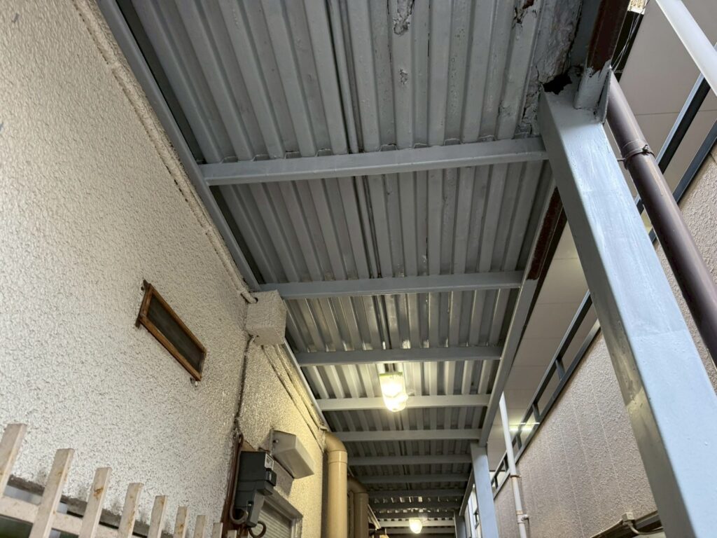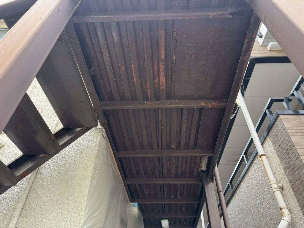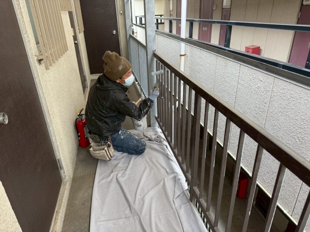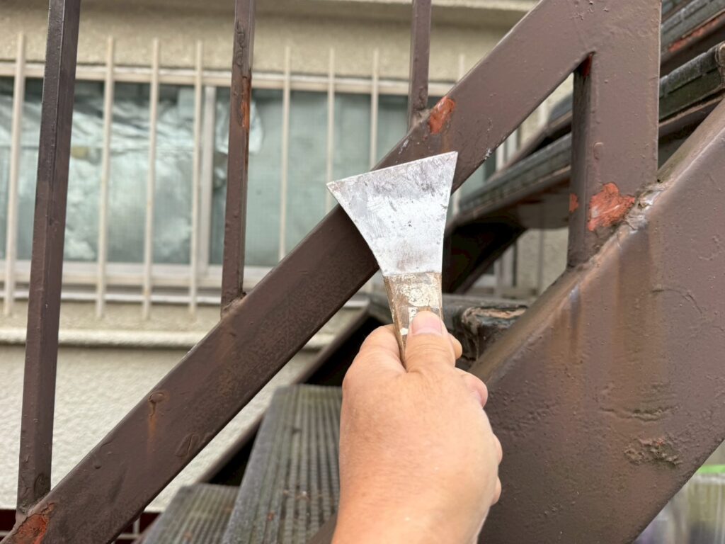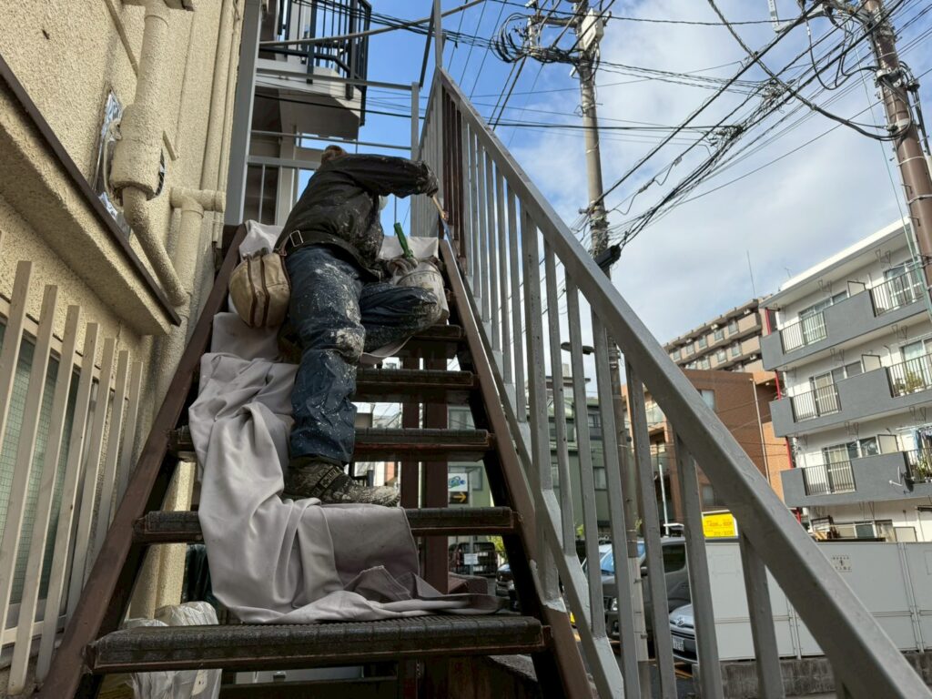 中野区では本日から鉄骨階段の塗装工事を行っております。