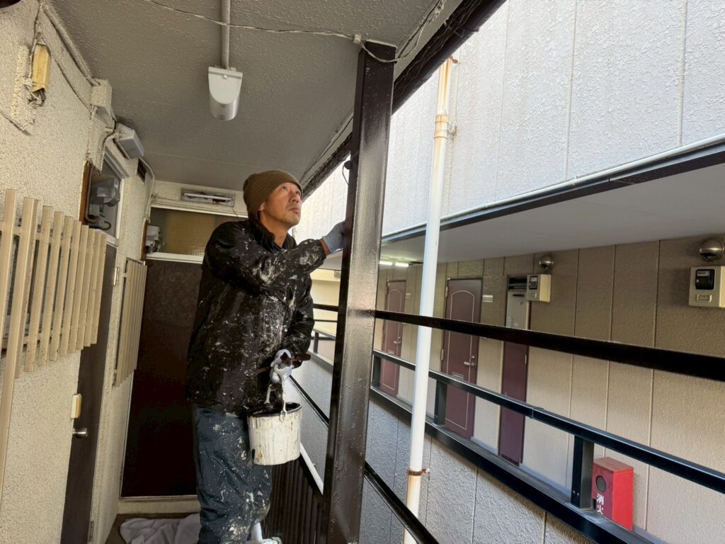 中野区の鉄骨階段塗装工事の続きです。
