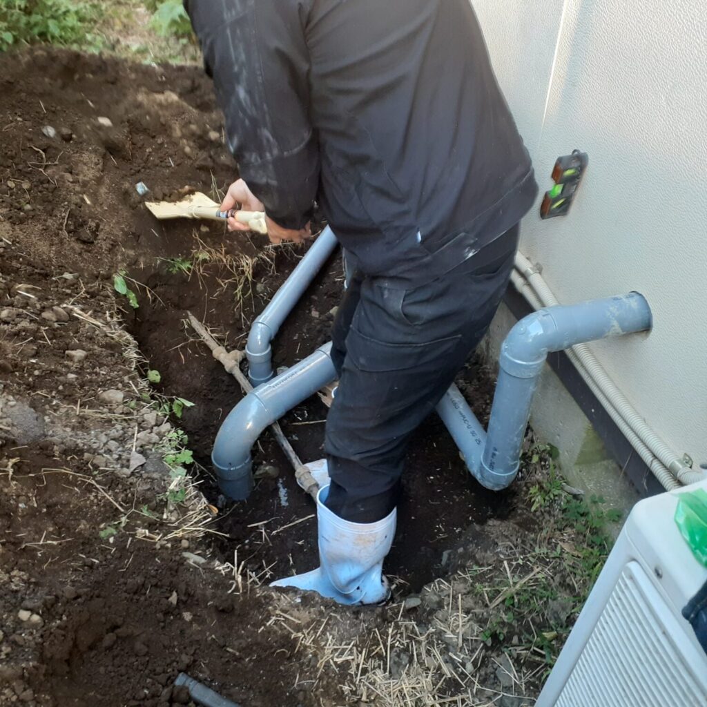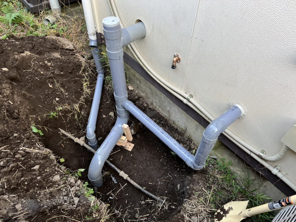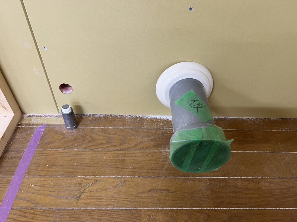 本日は間仕切りの続きと新規トイレの為の配管工事を行いました。