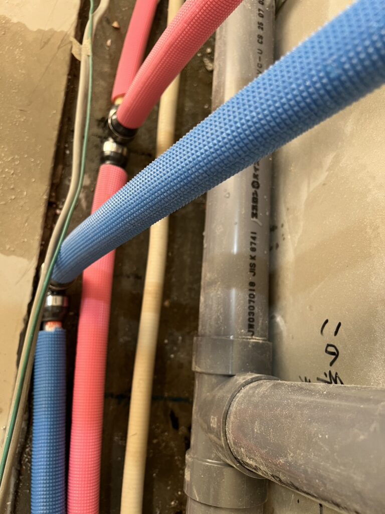 杉並区で行っているマンションリフォームですが、本日は給排水管の更新作業を行いました。