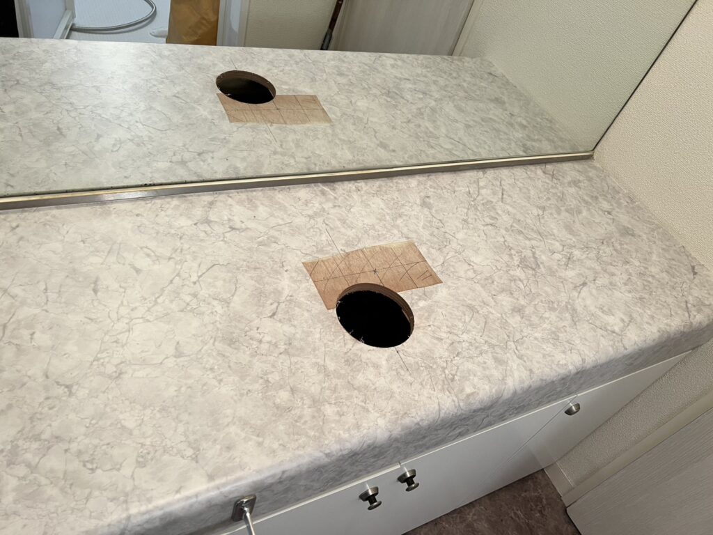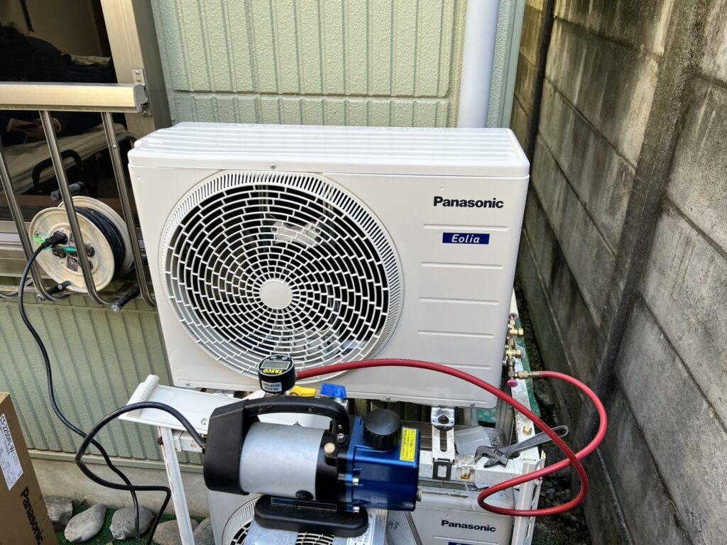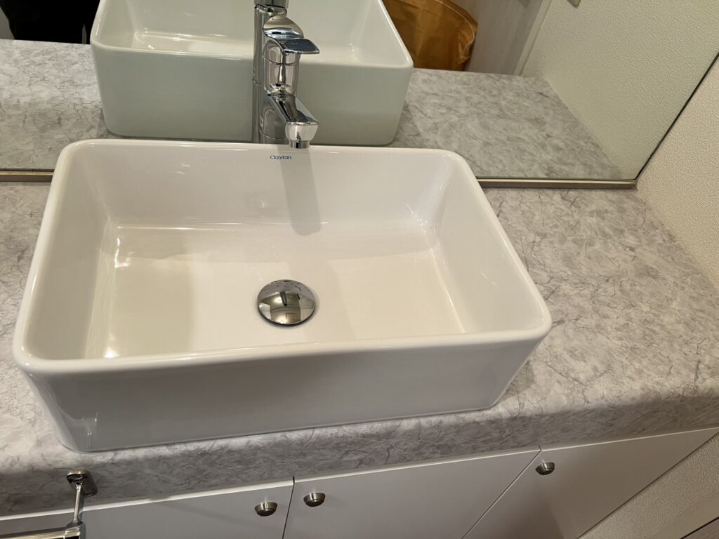 エアコン交換・インターホン交換・造作洗面台新規設置工事を行いました。