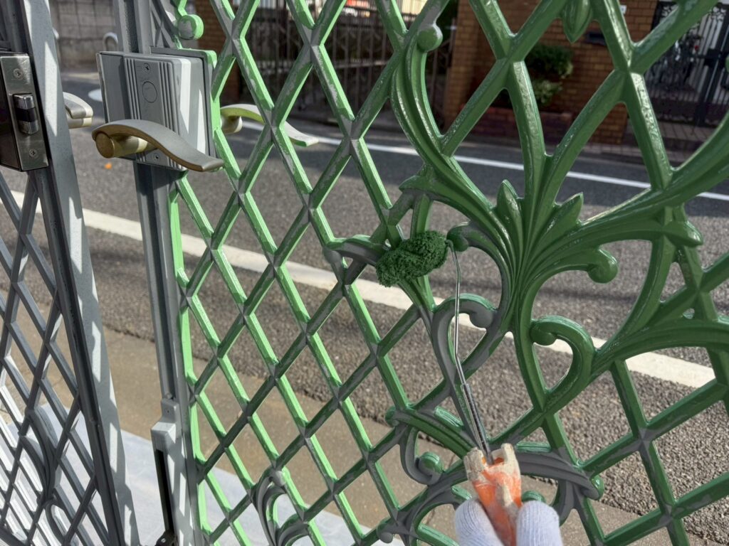 世田谷区の門扉塗装作業、今日は中塗り作業でした。