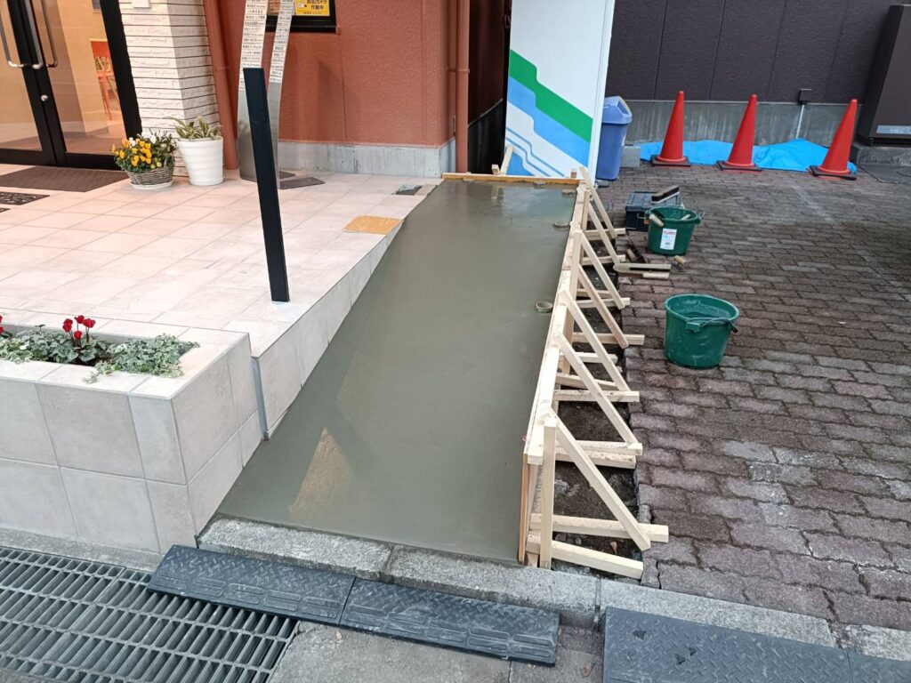 本日はコンクリート打設、刷毛引き作業でした。