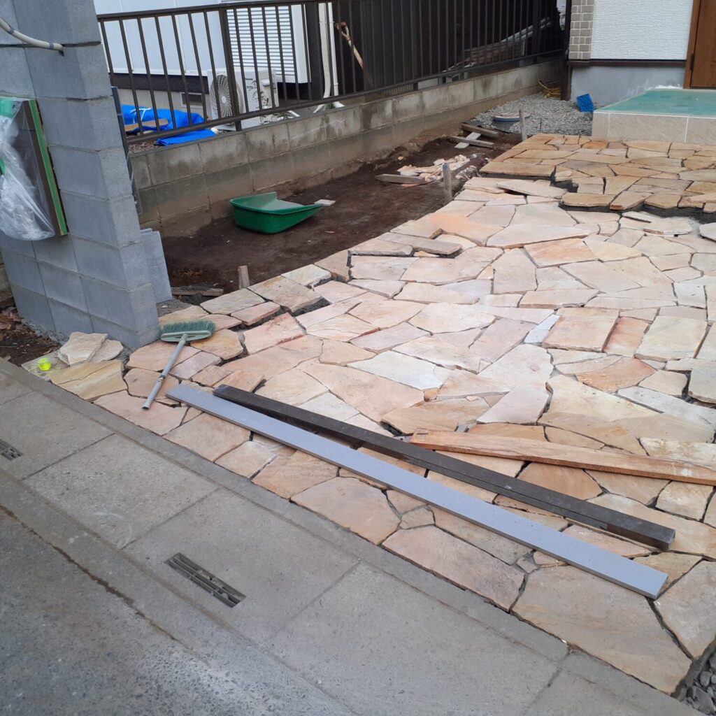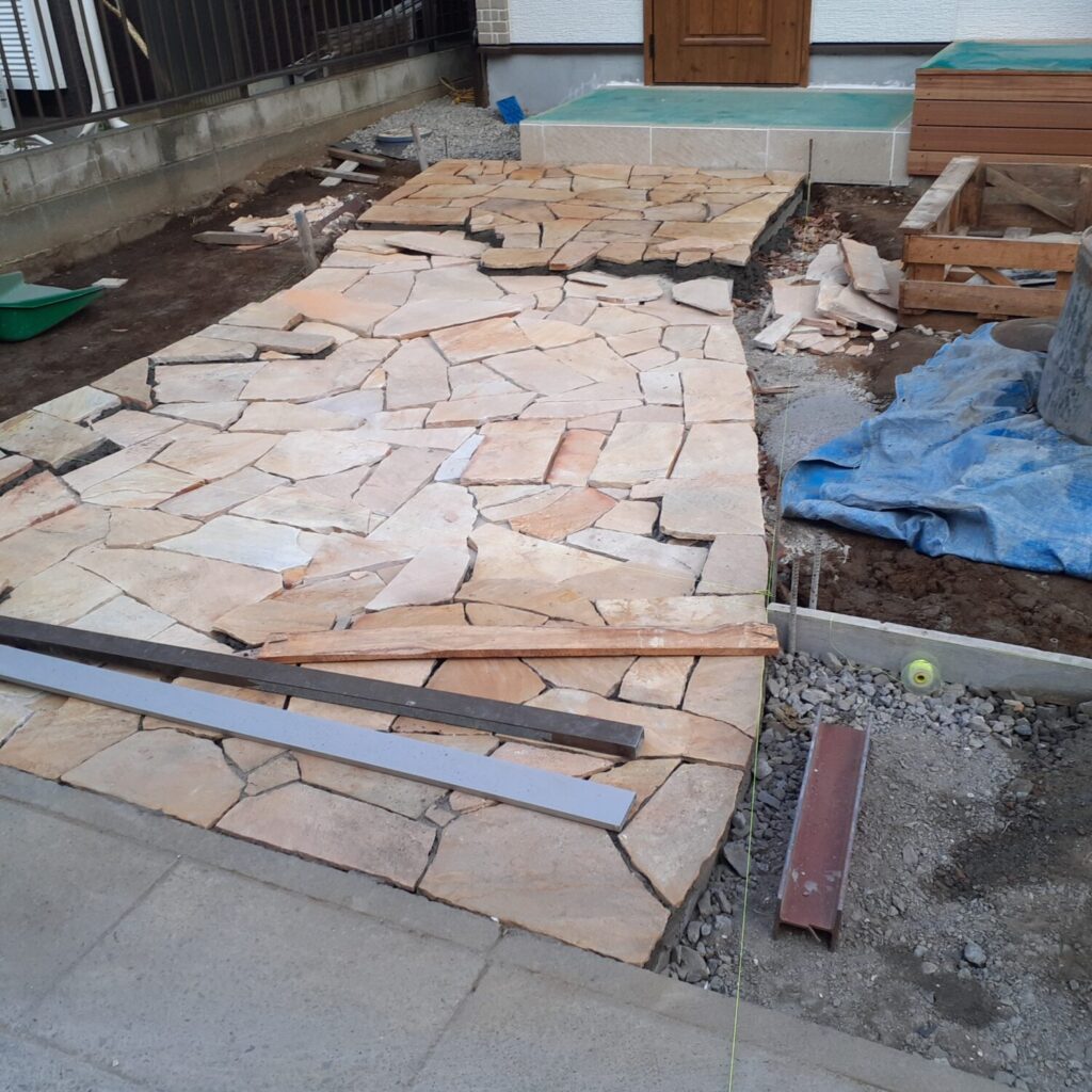 少しずつしか進行していないように見えますが、石を並べていく作業は外構作業の中でも最も時間がかかる作業のひとつです。