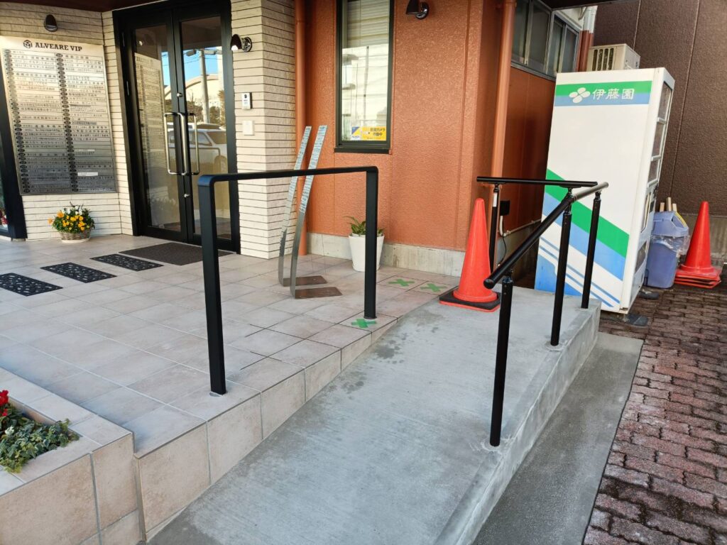さいたま市で行っているレンタルオフィス外構工事現場ではスロープ設置工事が完了しました。