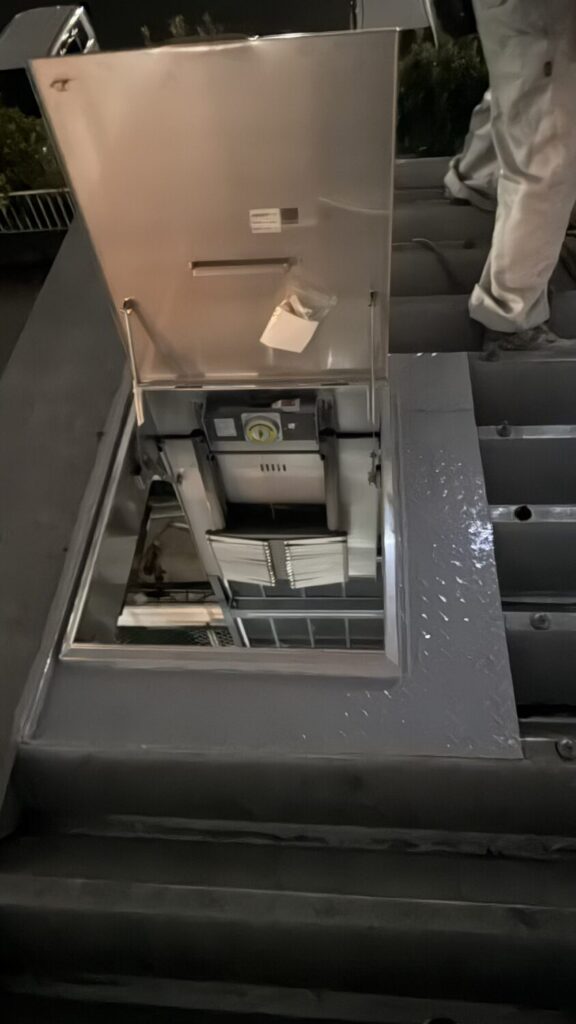 上尾市の倉庫でメンテナンス用はしごの設置工事を行いました。
