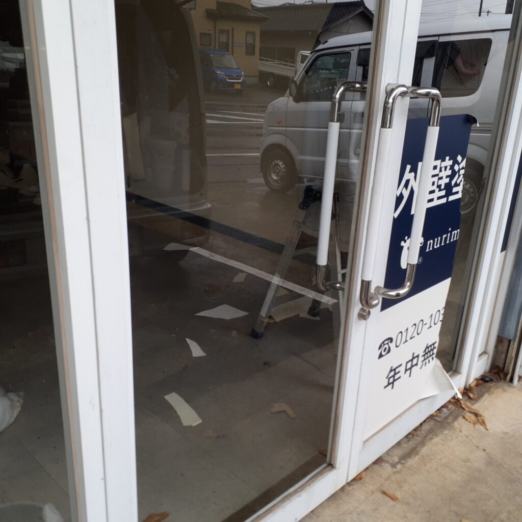 本日は上尾市小泉で使用していた旧上尾事務所でガラスの店舗案内シールをはがしました。