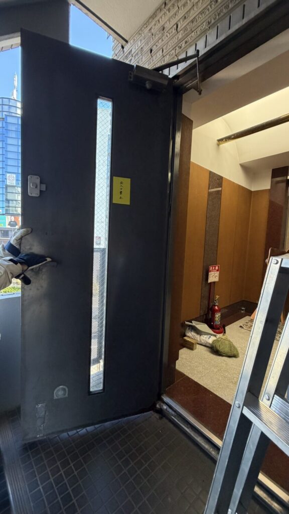 品川区のマンションで共有部ドア修理を行いました。