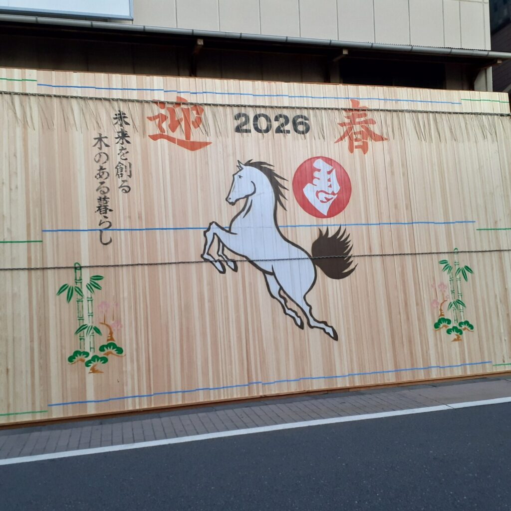 板橋倉庫の向かいにいつもお世話になっている材木店がありますが、毎年年末年始に木材に干支を書いて飾っています。
