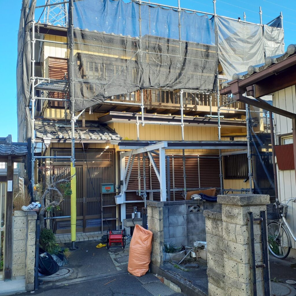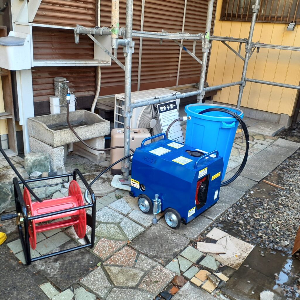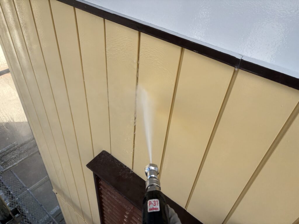 本日の桶川市の外壁塗装現場では高圧洗浄作業を行いました。