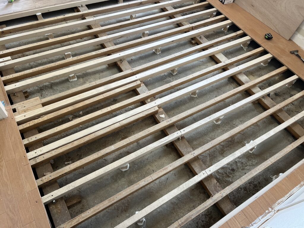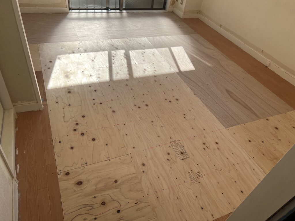杉並区にあるマンションのリフォーム工事現場では床の補強作業を行いました。