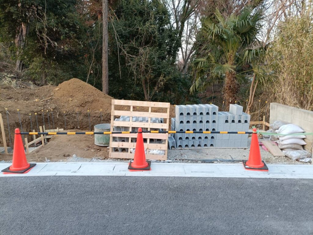 上尾市の外構工事現場ではブロックベース枠の取外しを行いました。