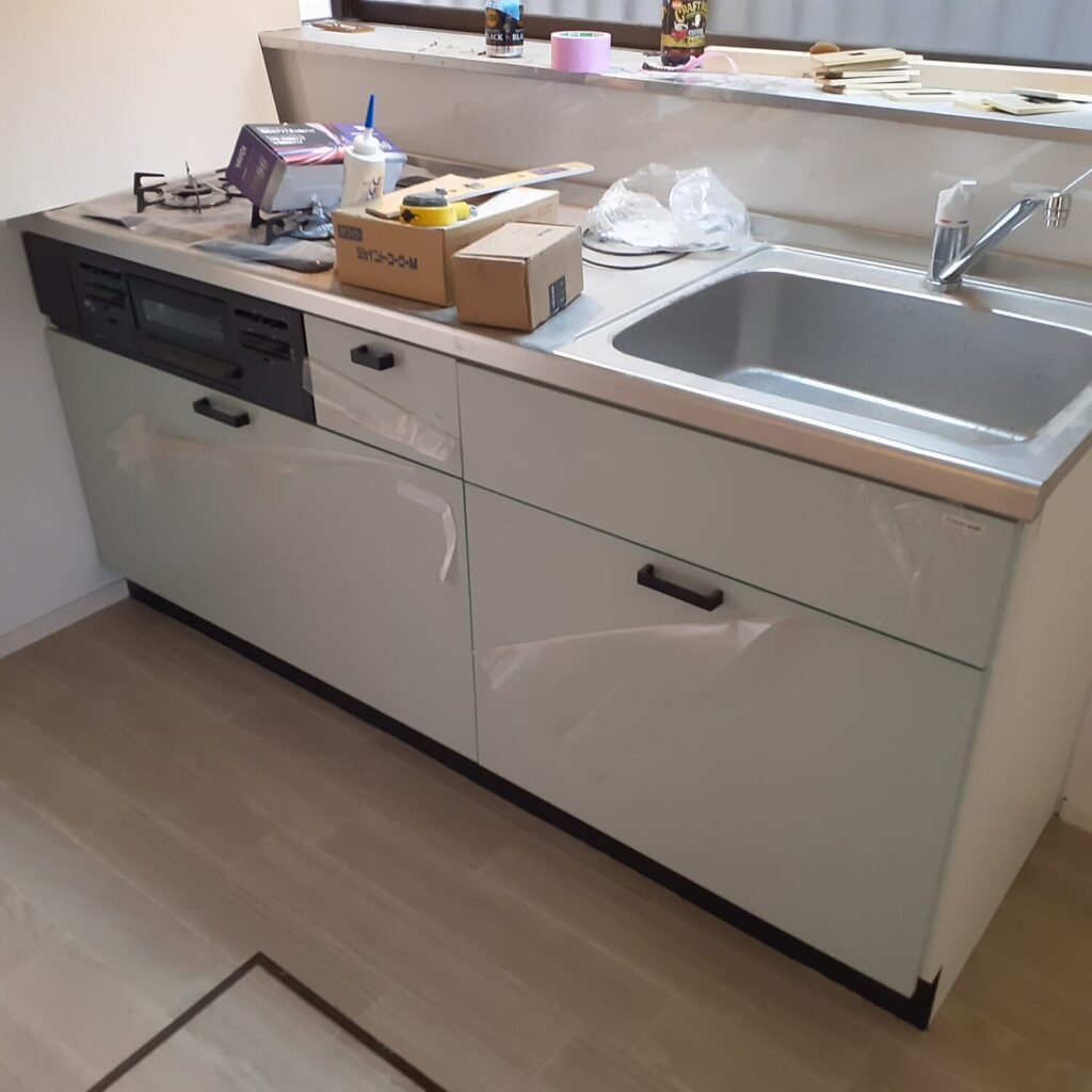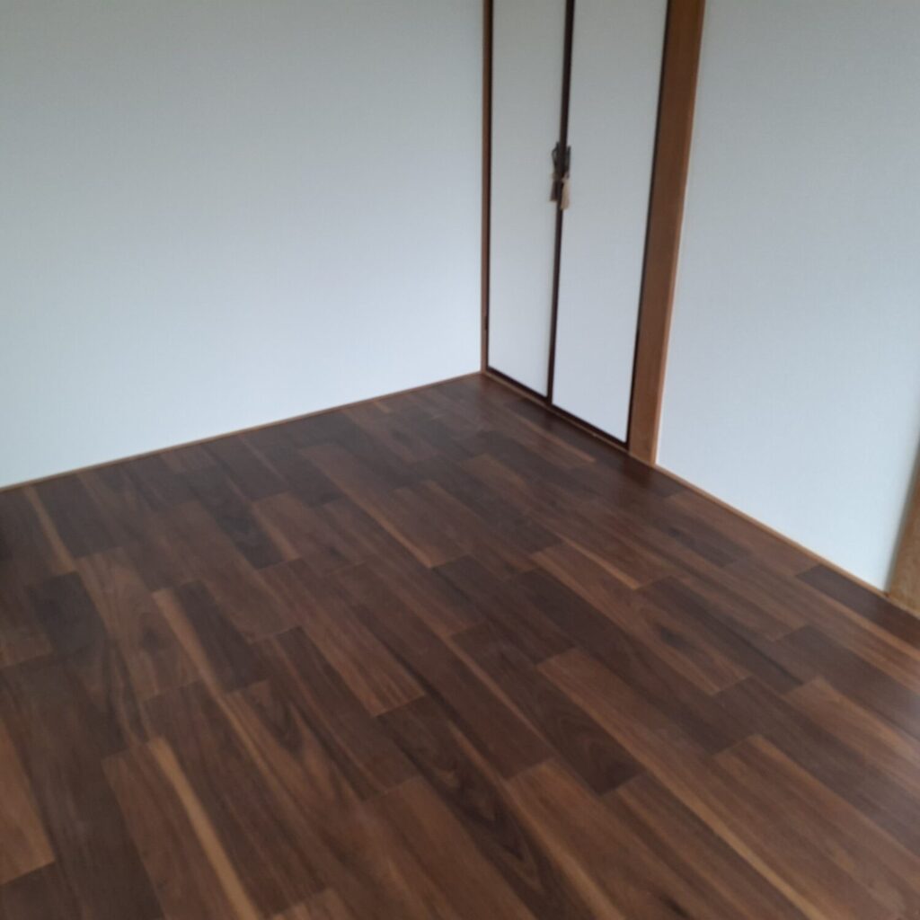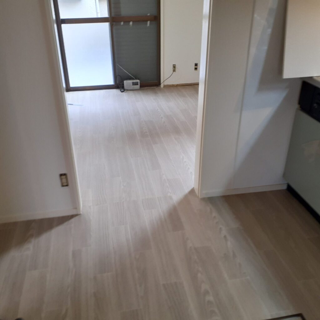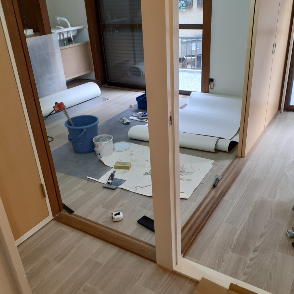 桶川市の戸建てリフォーム現場では床シート作業が終了しました。
