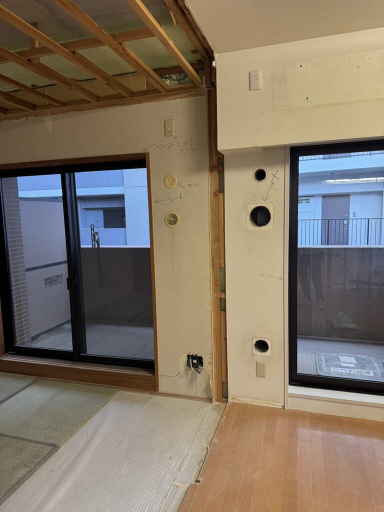 墨田区のマンション改装現場では本日も解体作業を行いました。