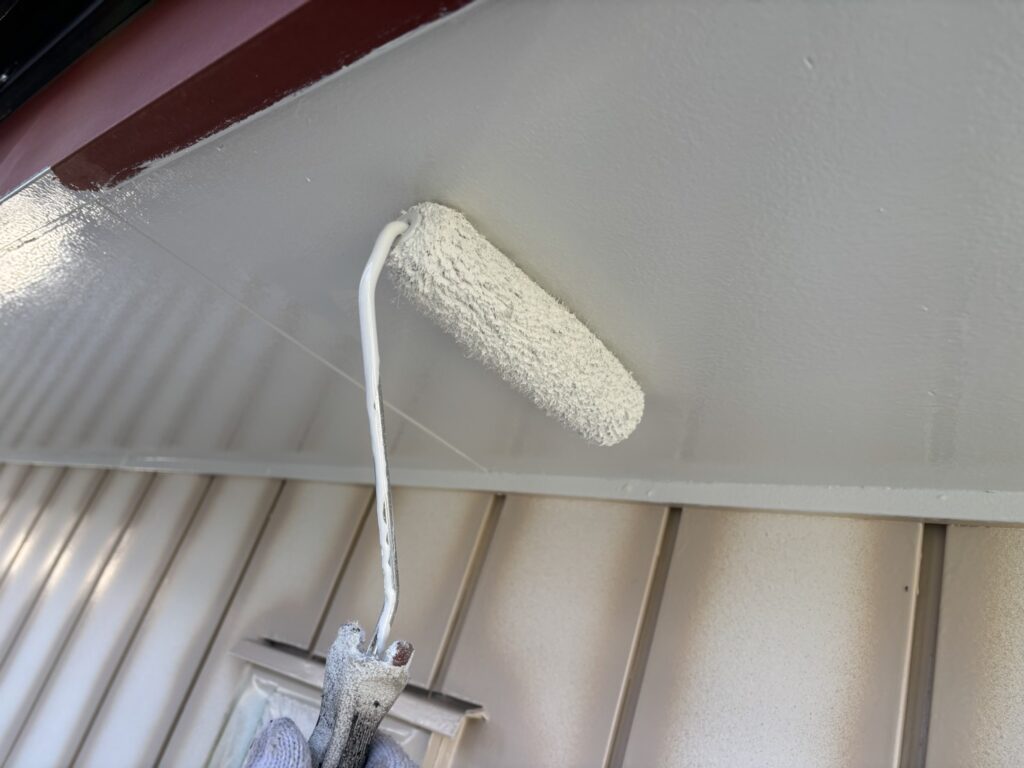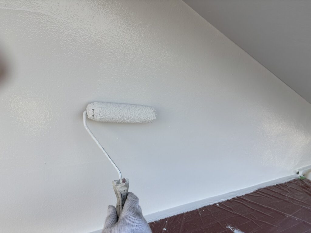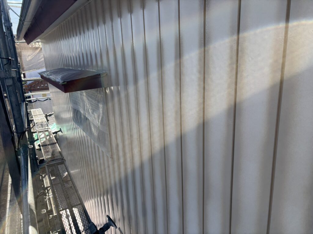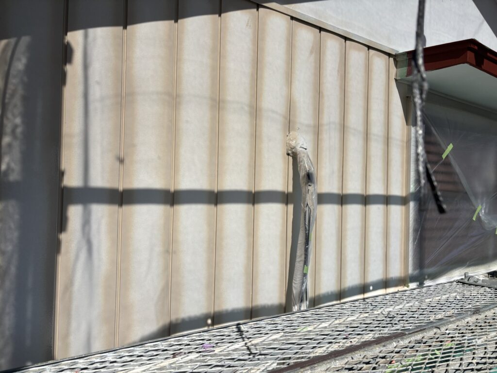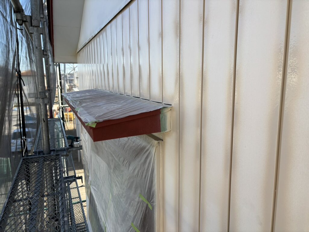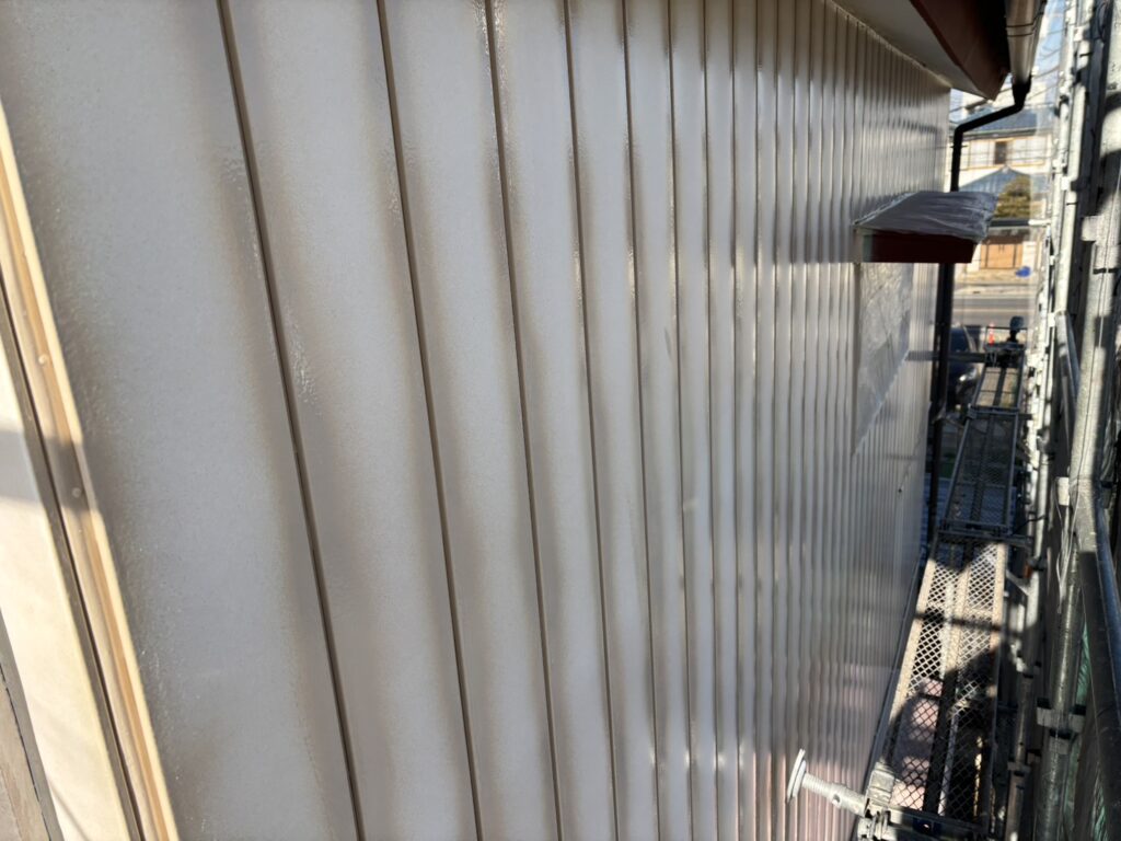 桶川市の外壁塗装ですが、本日塗装作業下塗りと上塗り一部です。