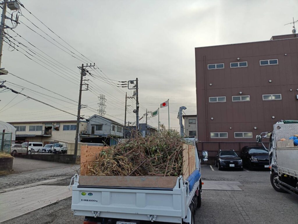 本日の上尾市の外構工事現場では生木の伐採と処分を行いました。