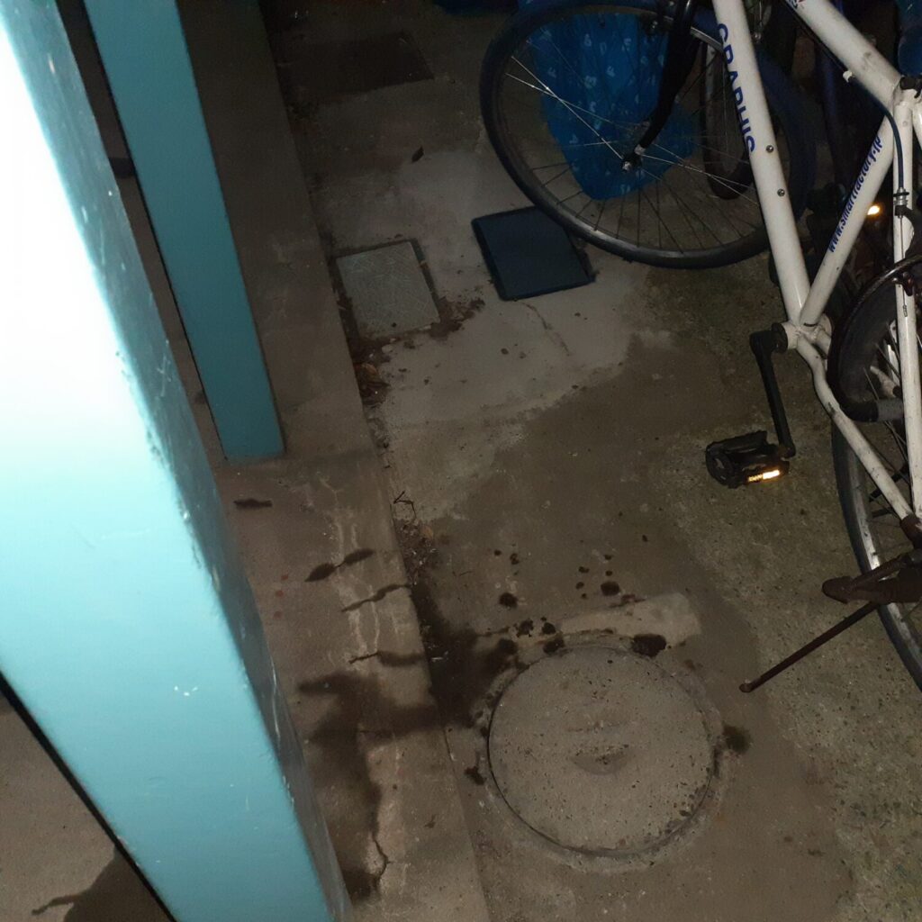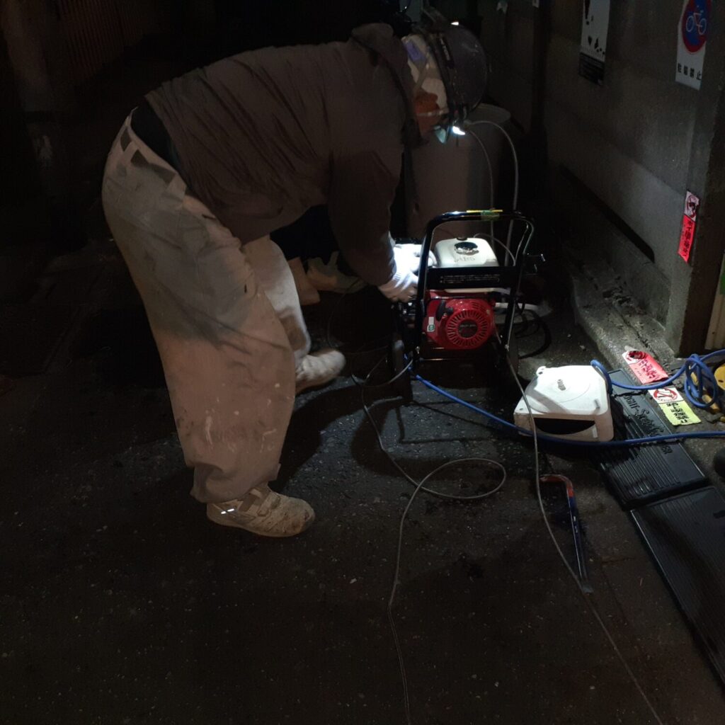 本日、緊急排水詰まり対応に伺いましたが、アパート外部の桝と桝の間が土砂で詰まって(桝が破損していて周囲の土砂が入っている状態)いて高圧洗浄機では対応できませんでした。