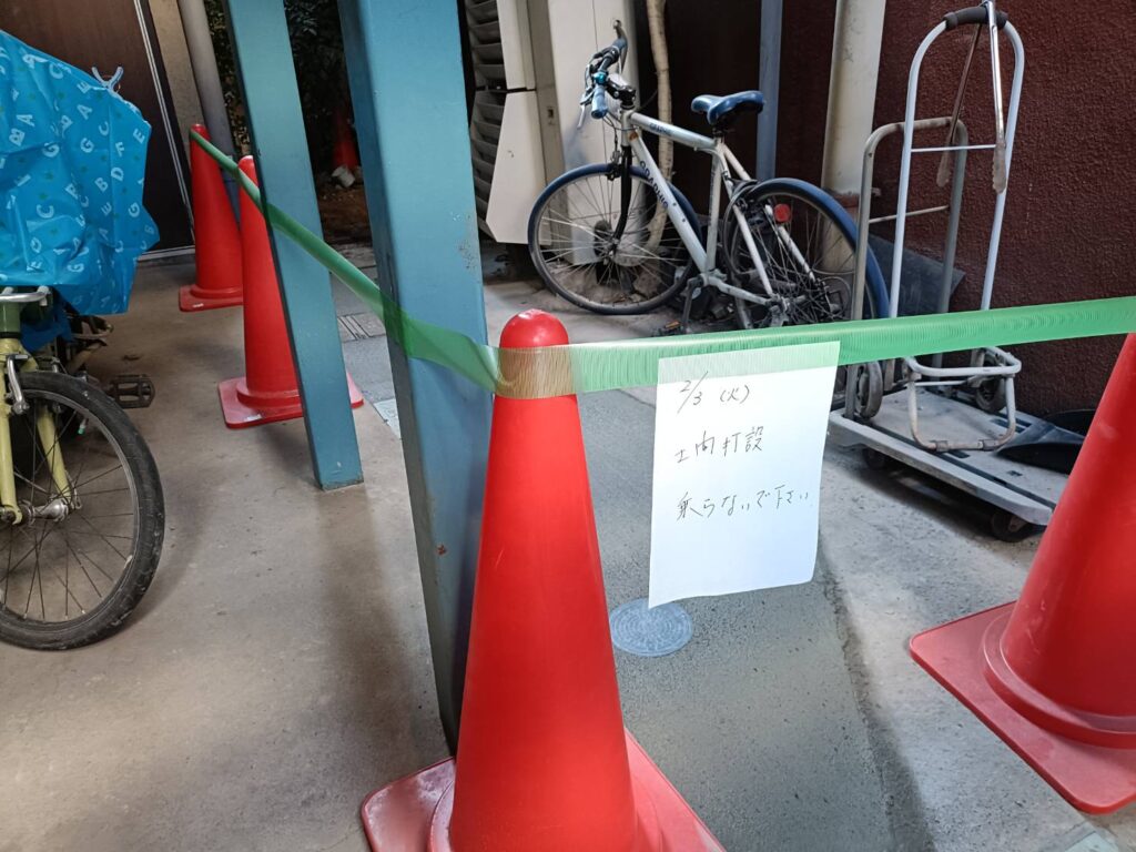 カラーコーンは後日取外しに行きます。
