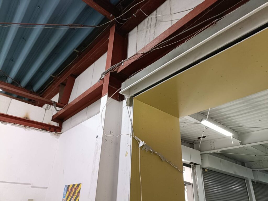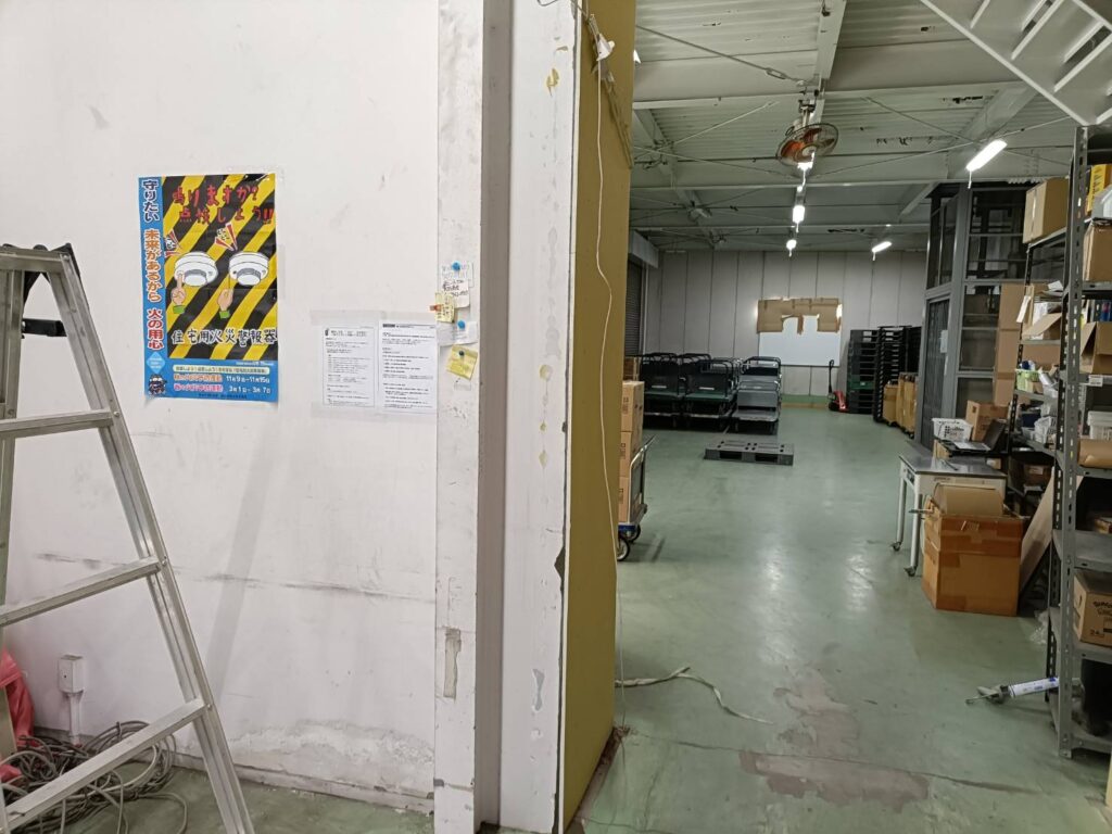 上尾市の倉庫改装工事現場では配線工事・ボード隙間部モルタル補修作業を行いました。