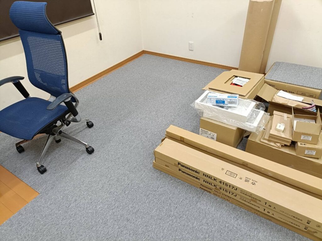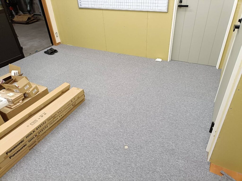 時間があったので、上尾事務所のタイルカーペットを張りました。
