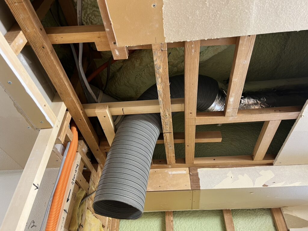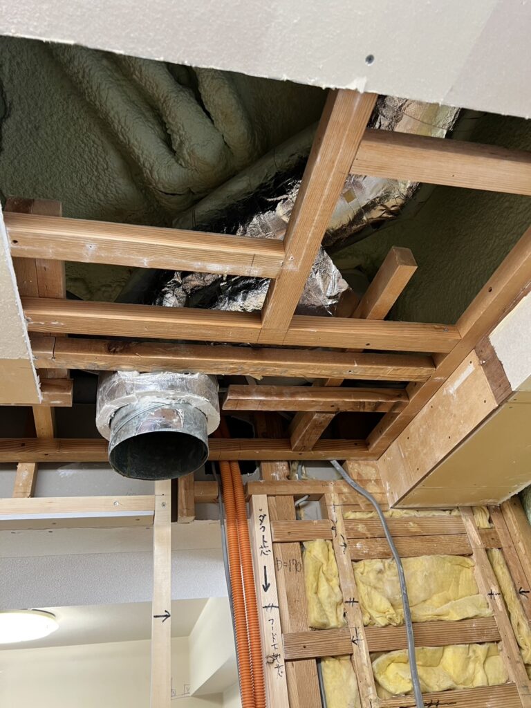 杉並区のマンションリフォーム工事現場ではキッチンと浴室の配管工事を行いました。