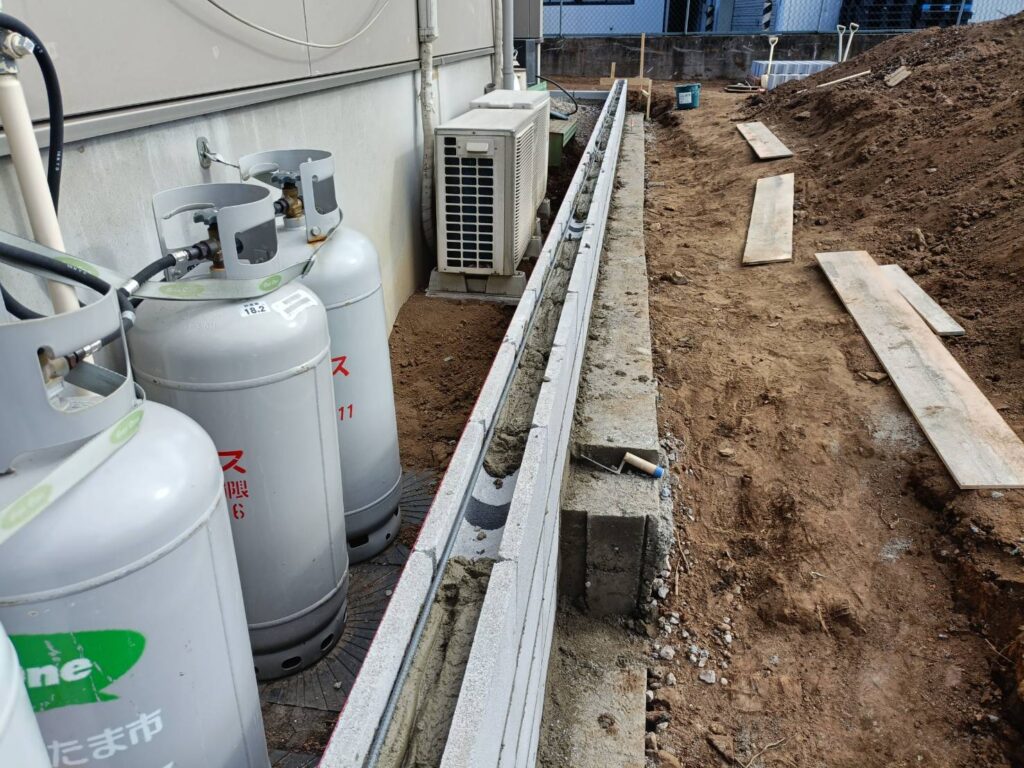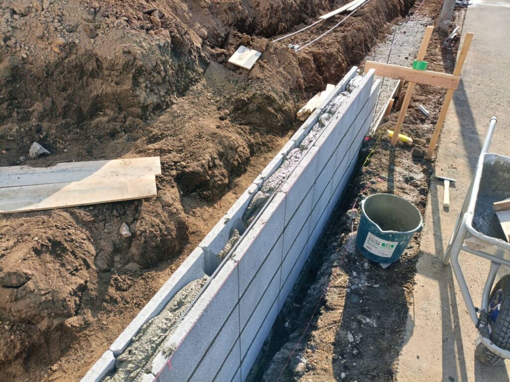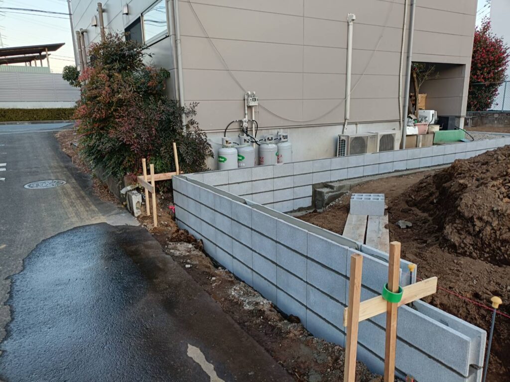 上尾市で行っております外構工事現場では、組積工事を行いました。