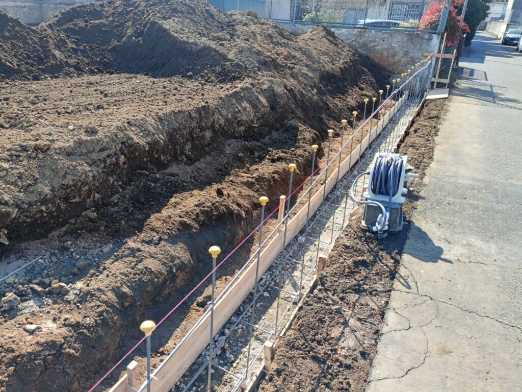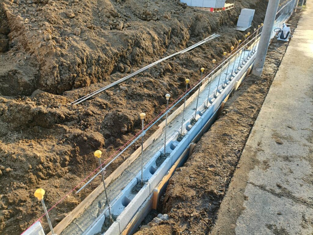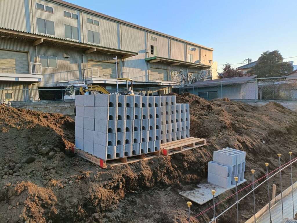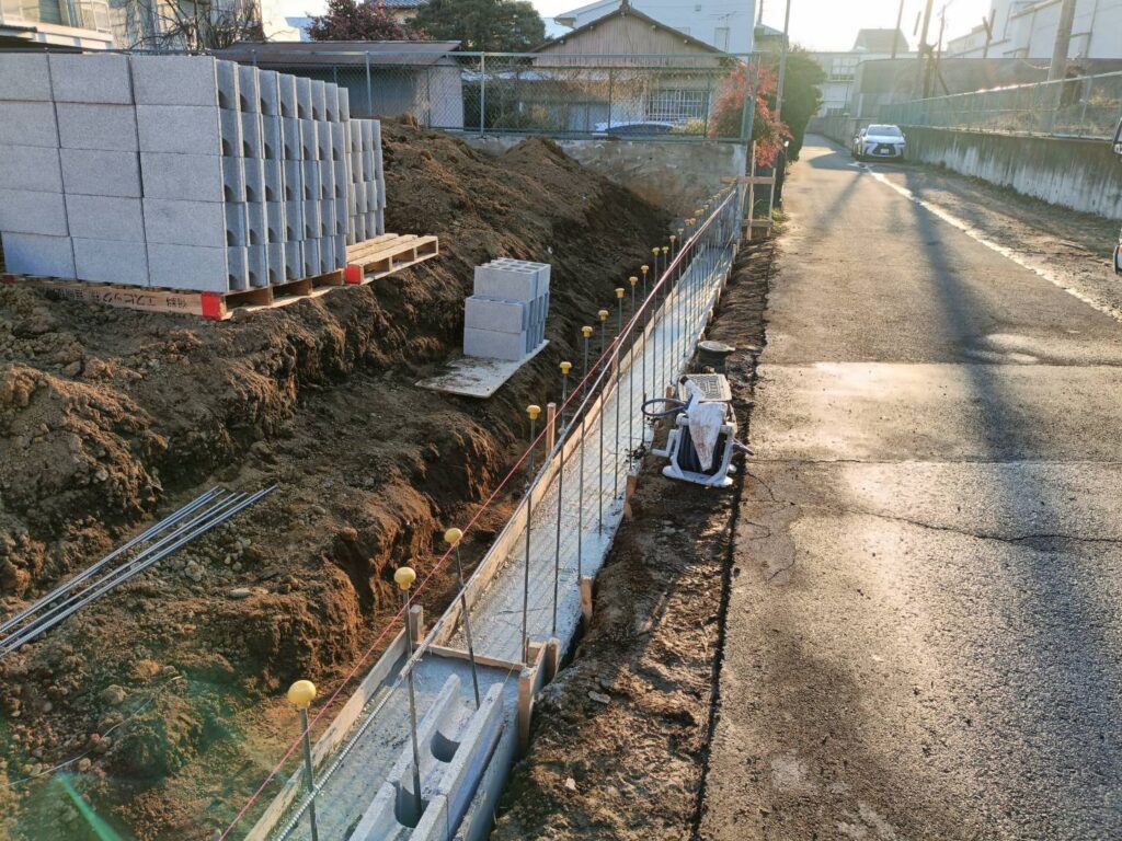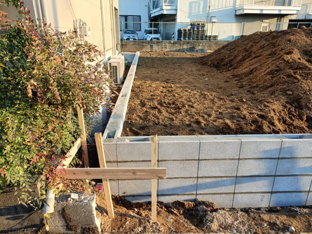 上尾市で行っております外構工事現場では、配筋ベース打設を行いました。