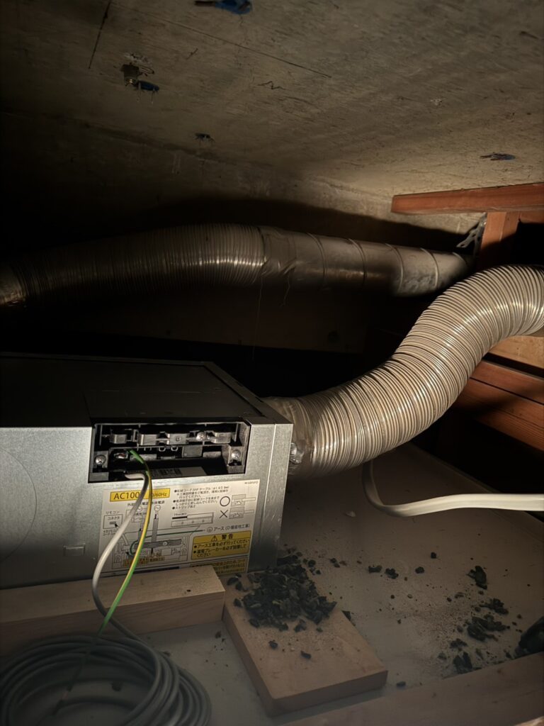 本日は浴室乾燥機を設置(普通の換気扇から交換)しました。