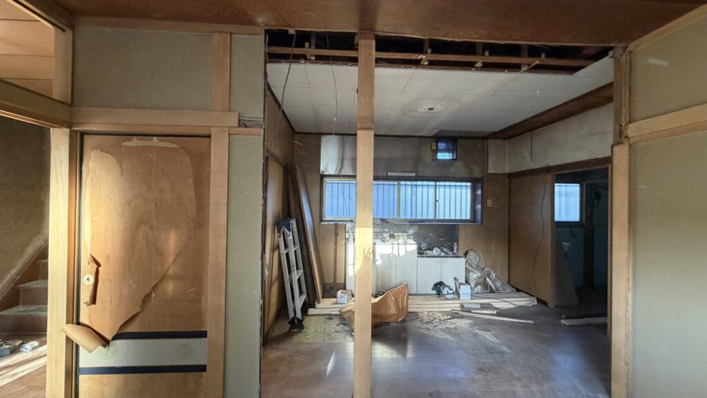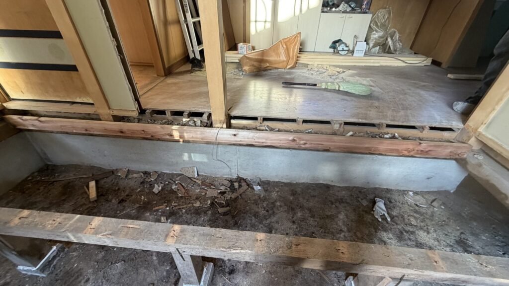 桶川市の戸建て改装工事現場で行っている室内の造作作業です。