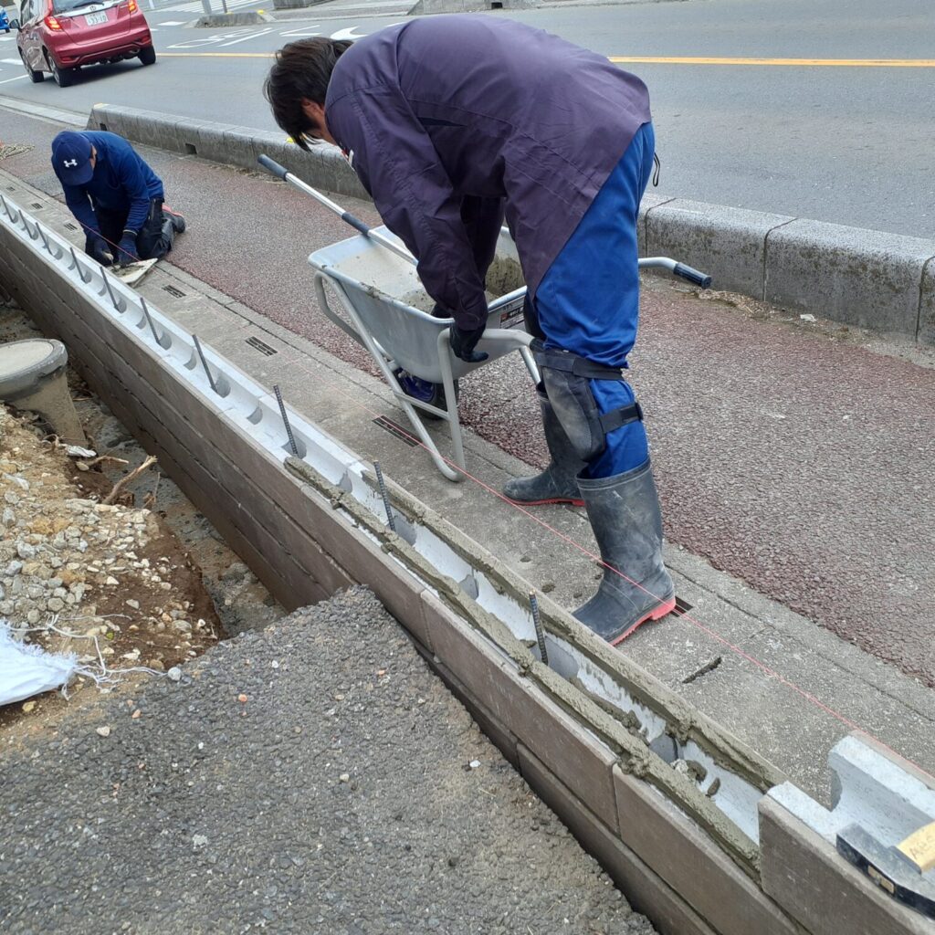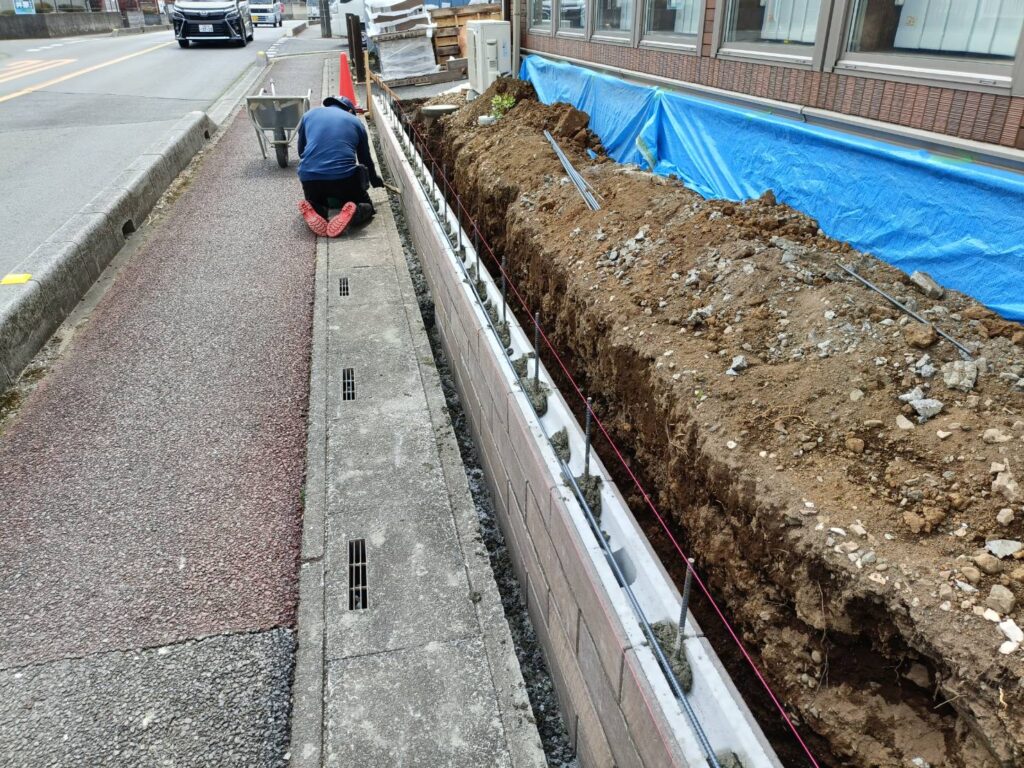 本日でブロック積の作業は完了となりました。