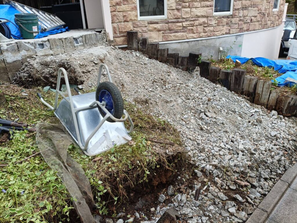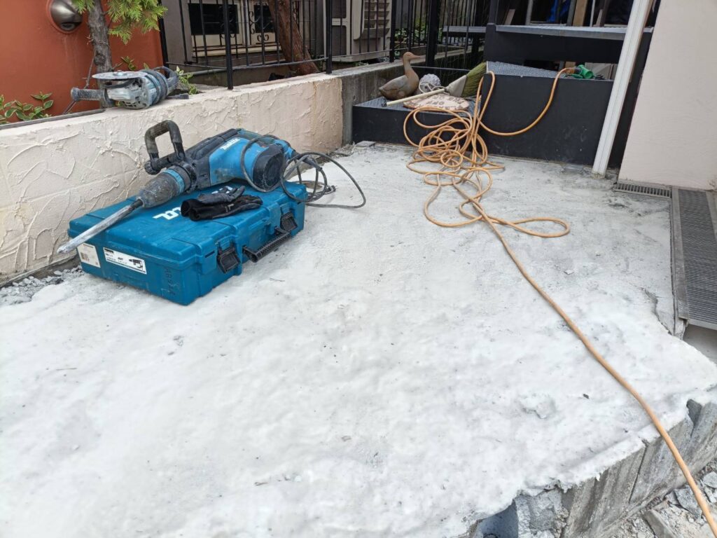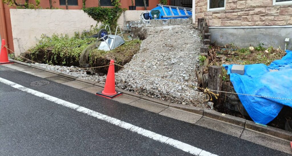 4/6の目黒区の外構工事です。階段、ポーチの削り作業を行いました。