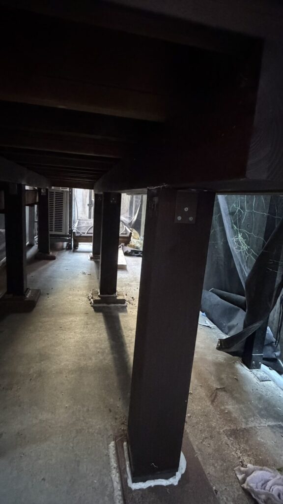 本日は雨仕舞処理と床下補強処理を行いました。