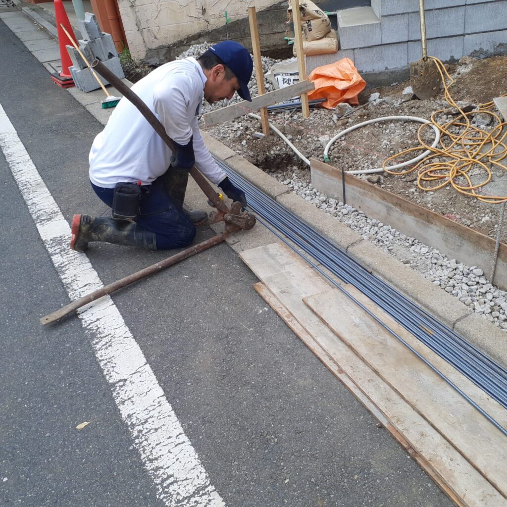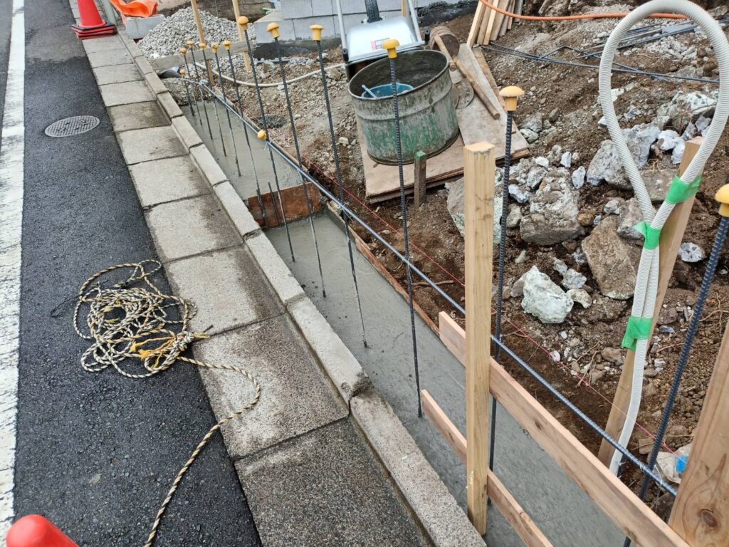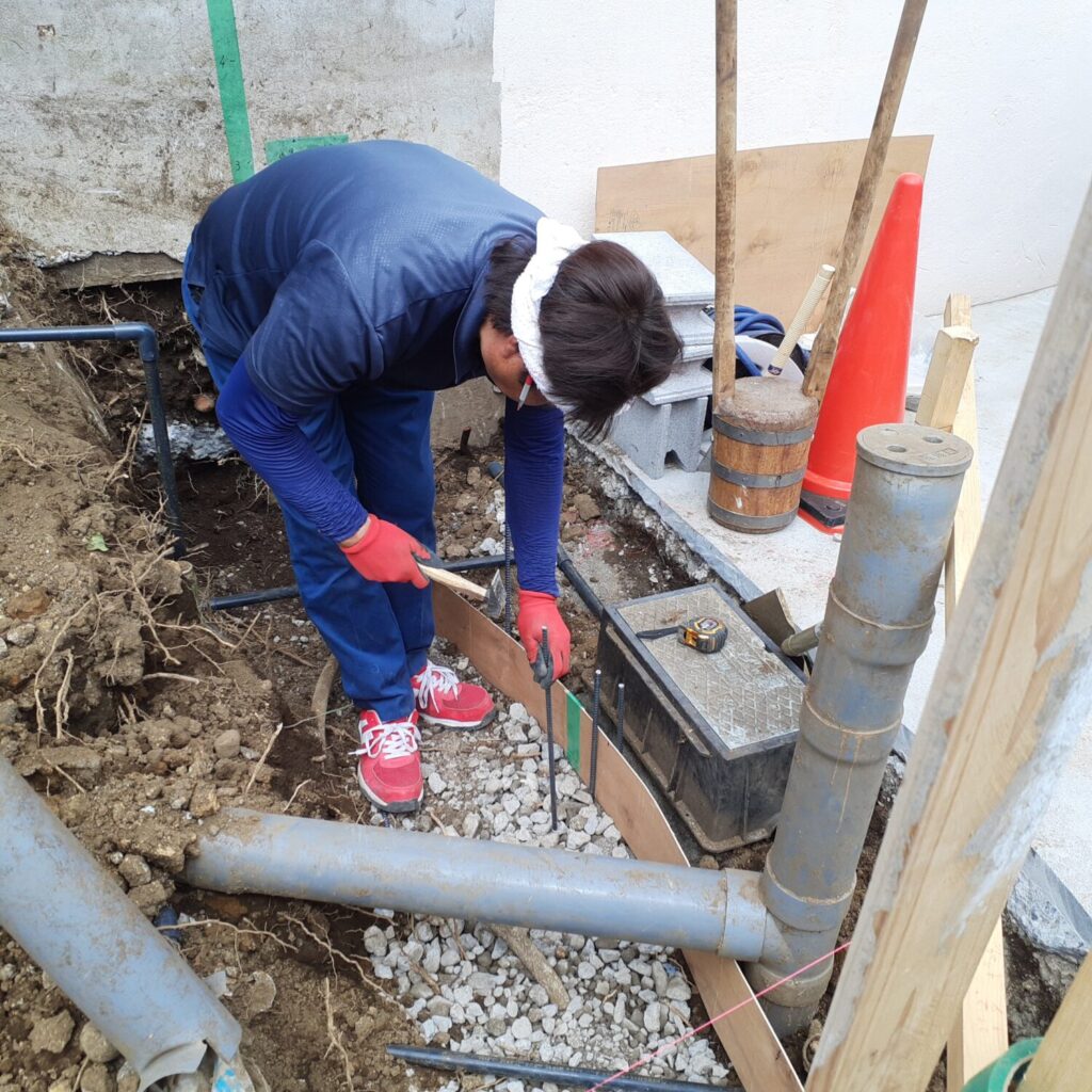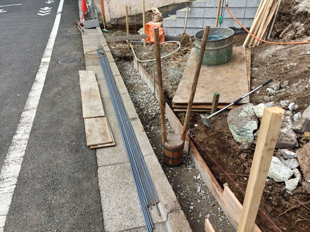 本日はスロープ部分のブロックベース、配筋処理を行いました。