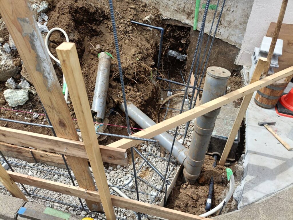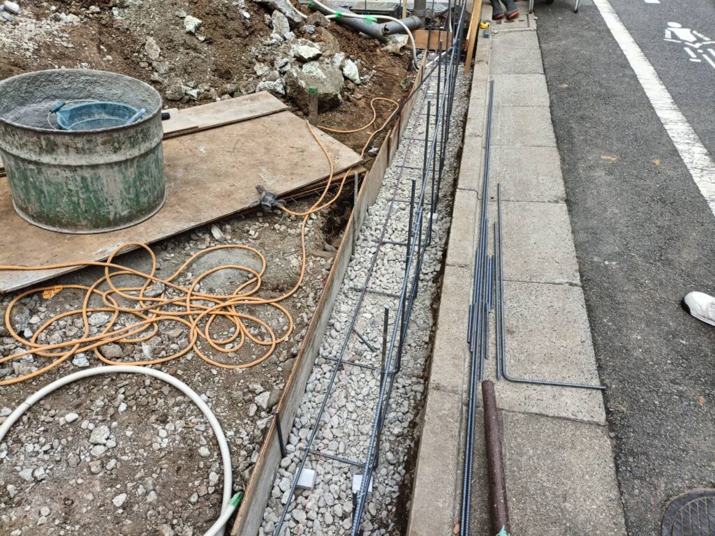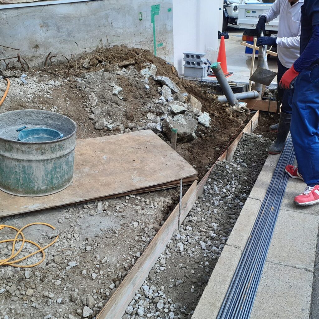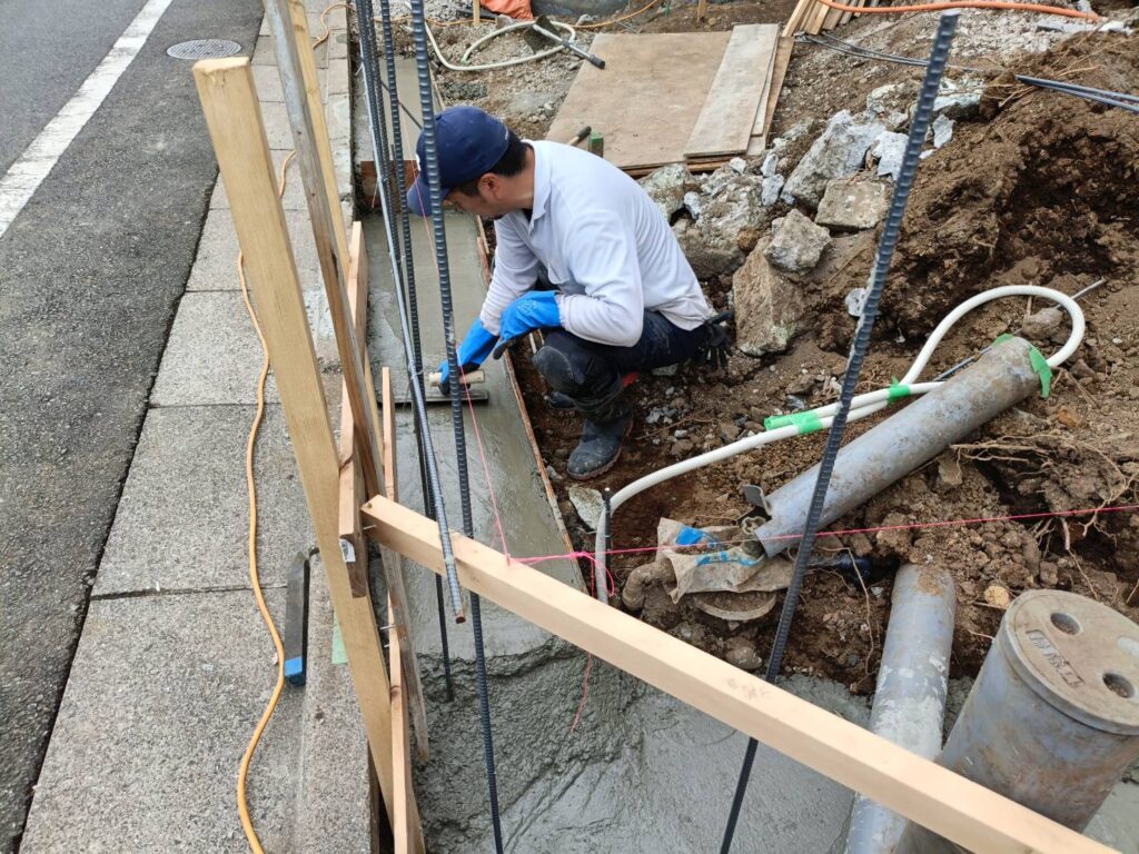 本日はスロープ部分のブロックベース、配筋処理を行いました。