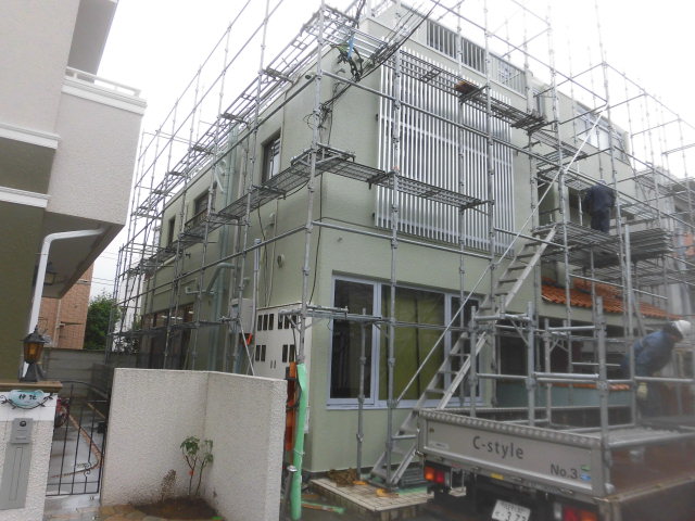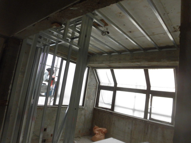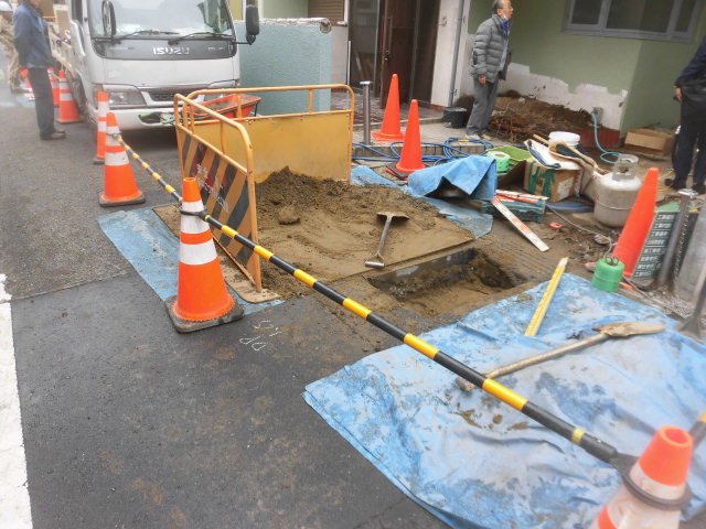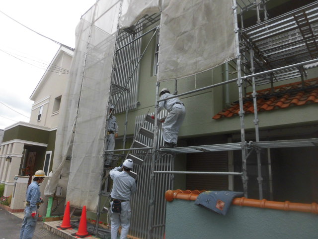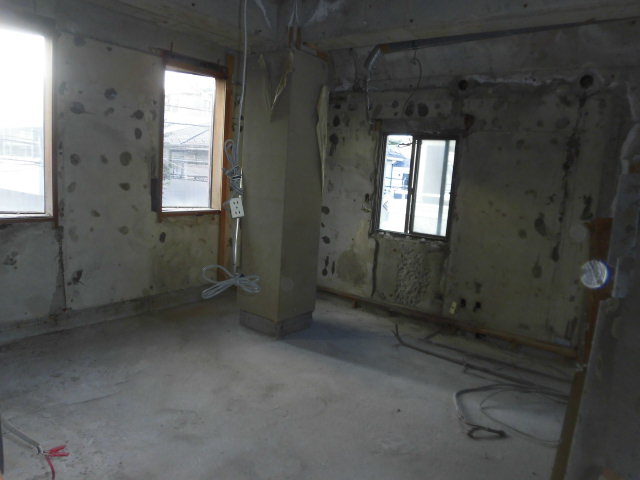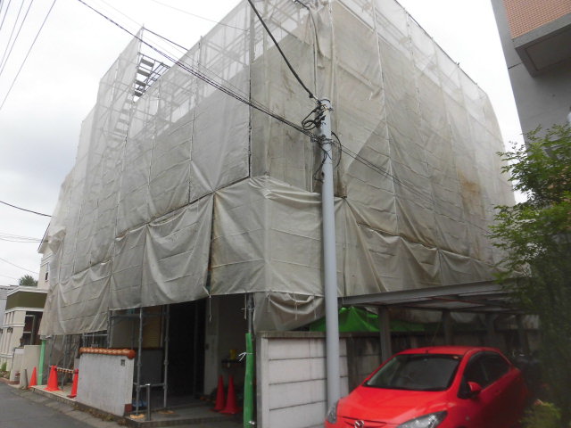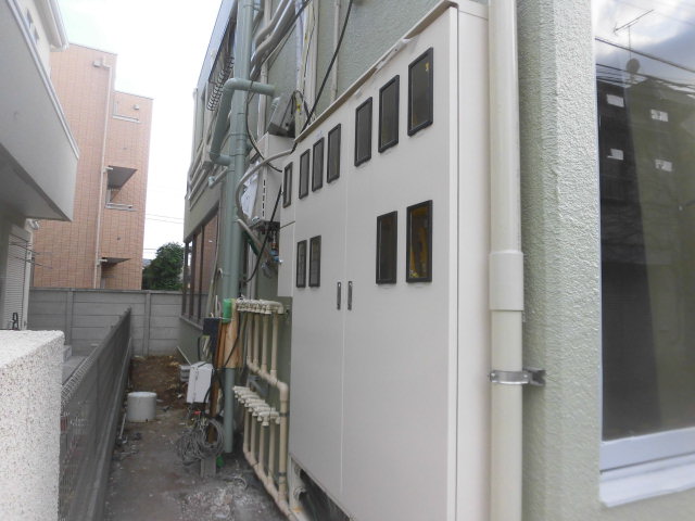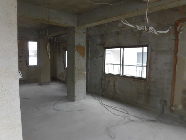 施工内容屋上防水、外壁塗装、9所帯分の水廻り新規設置、水道メータ分割、電気メーター分割、ガスメーター分割、給排水配管・電気配線・ガス配管分割新規設置