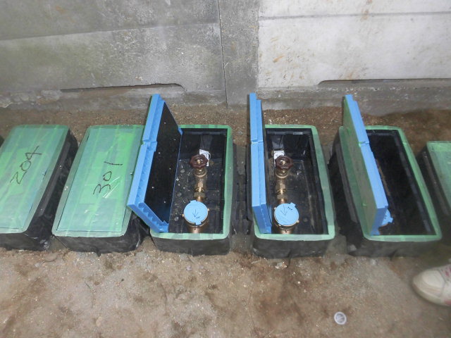 施工内容屋上防水、外壁塗装、9所帯分の水廻り新規設置、水道メータ分割、電気メーター分割、ガスメーター分割、給排水配管・電気配線・ガス配管分割新規設置
